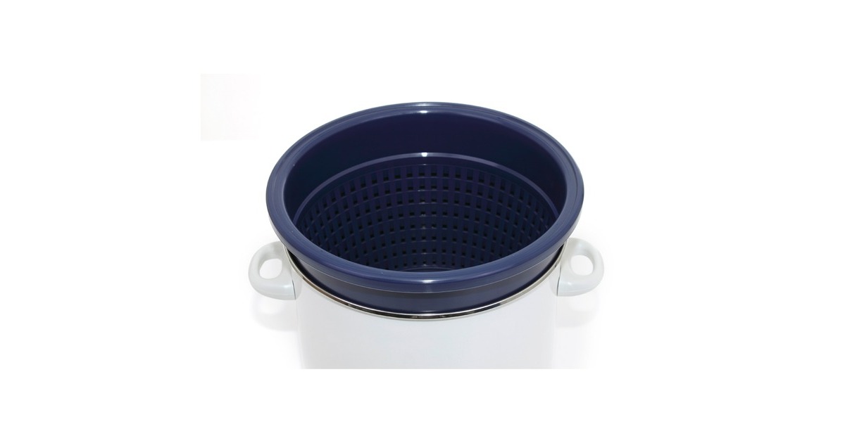 Topfdurchmesser: 28 cm, Fruchtkorb aus lebensmittelechtem Kunststoff mit 10 Liter Inhalt, Saftauffangbehälter: 4 Liter |
