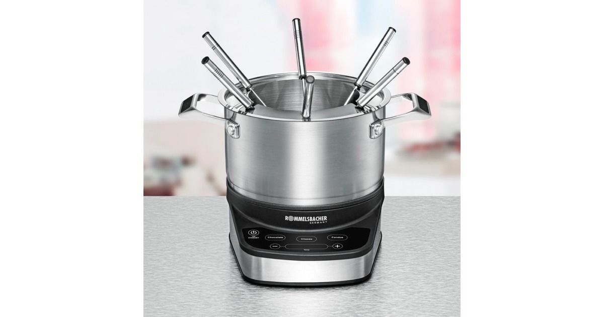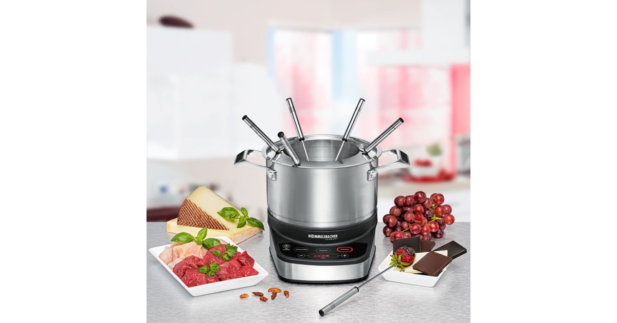 Hochwertige Technik vereint sich mit zeitgemäßem Design. Dieses attraktive Elektro Fondue Set überzeugt durch beste äußere und innere Werte. Das Fondue mit feinfühliger elektronischer Temperaturkontrolle erreicht eine sehr hohe Temperaturgenauigkeit und ist dadurch für alle Fonduearten bestens geeignet: für Fondue mit Öl und Bouillon ebenso wie für ein sensibles Käse- oder Schokoladenfondue. Drei Programme stehen zur Auswahl, deren Temperaturstufen individuell angepasst werden können. Die Bedienung über Touch Control Sensoren und die nutzerführende Beleuchtung sorgen für sicheres und einfaches Handling. Auch sonst wird Sicherheit groß geschrieben. Dezente Signaltöne, eine Betriebsdauerbegrenzung, die Restwärmeanzeige sowie die sichere Kombination von Topf und elektrischer Kochplatte lassen keine Wünsche offen. Der Komfort setzt sich auch nach dem Fonduegenuss fort: pflegeleichtes Edelstahl und eine beschichtete Heizplatte machen die Reinigung ‚danach‘ denkbar einfach. Art.-Nr.: 1699888