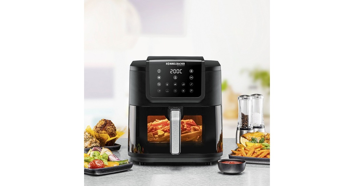 Die Heißluftfritteuse FRH 1700 XXL von Rommelsbacher ist die ideale Wahl für die fettarme, gesündere Zubereitung von Snacks und schnellen Gerichten. Von Pommes, Rolls, Wings und Muffins bis zu Steaks und Kuchen und von pikant bis süß, Gerichte, Beilagen, Fingerfood und Snacks können jetzt fettarm, zeit- und energieeffizient zubereitet werden. Das Gerät mit Sichtfenster und Innenraumbeleuchtung macht in jeder Küche eine gute Figur. Die innovative Hot Air Convection Technology sorgt für optimale Hitzeverteilung und einen angenehm leisen Betrieb. Zehn individuell anpassbare Programme, in Schritten von 5°C eingestellbare Temperaturen und die 60 Minuten Zeitschaltuhr machen die Bedienung angenehm einfach, leichtes Antippen der Sensoren genügt. Die Programme können nach den individuellen Vorstellungen verändert und auch dauerhaft abgespeichert werden. Die Benutzung der Heißluftfritteuse FRH 1700 ist beruhigend sicher. Dafür sorgen das wärmeisolierte Gehäuse, der Sicherheitsschalter, der Überhitzungsschutz und die rutschfesten Füße. Durch die Verwendung hochwertiger Materialien und der 2-Lagen Antihaftbeschichtung ist auch das anschließende Reinigen sehr einfach. Die FRH 1700 XXL ist eine zeitgemäße Ergänzung für größere Haushalte, in denen Wert auf eine einfache, gesündere und effizientere Art des Kochens gelegt wird.Art.-Nr.: 100037195