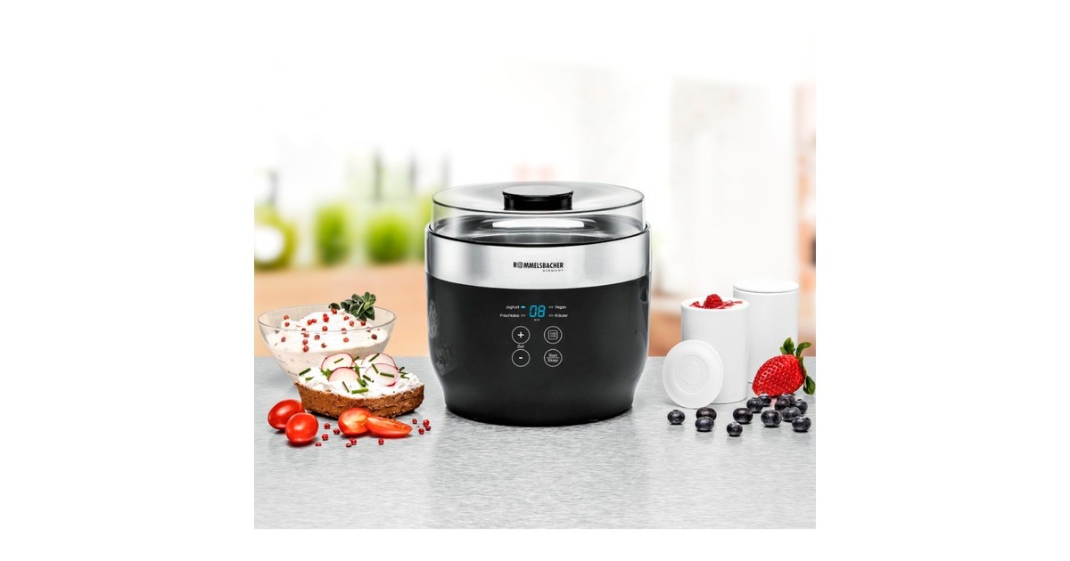 Selbstgemachter Joghurt und Frischkäse sind beliebte Lebensmittel für alle, die Wert auf eine bewusste und gesunde Ernährung ohne unerwünschte Inhaltsstoffe legen. Ob pur, als Zutat in Süßspeisen oder deftigen Gerichten - die Möglichkeiten sind vielfältig. Mit dem multifunktionalen Joghurt- und Frischkäsebereiter JG 80 "Jona" von Rommelsbacher können zuhause Naturjoghurt, Frischkäse und auch Kräuterextrakte aus selbstgewählten Zutaten hergestellt werden. Auch auf Vorrat, denn in einem Durchgang erhält man beispielsweise bis zu 1.200 g Joghurt, der anschließend im Kühlschrank gut eine Woche haltbar ist. Darüber hinaus verfügt das Gerät über insgesamt vier voreingestellte Programme. Während Naturjoghurt bei 42 °C hergestellt wird, ist für die veganen/laktosefreien Varianten eine Temperatur von 38 °C vorgesehen. Auch Frischkäse ist möglich, der bei 30 °C entsteht. Wer zudem Öl-Auszüge für kosmetische, naturheilkundliche oder Ernährungs-Zwecke herstellen will, kann dies mit der Kräuter-Extrakt-Funktion bei 55 °C verlässlich tun. Der Energieverbrauch ist sehr niedrig und die Bedienung sehr einfach. Die Programme lassen sich zudem individuell anpassen, so dass man mit "Jona" sogar Sauerteig herstellen kann. Der Rommelsbacher "Jona" ist somit ein sehr vielseitiges Gerät, das sehr gut in jeden gesundheitsbewussten Haushalt passt.Art.-Nr.: 1570213
