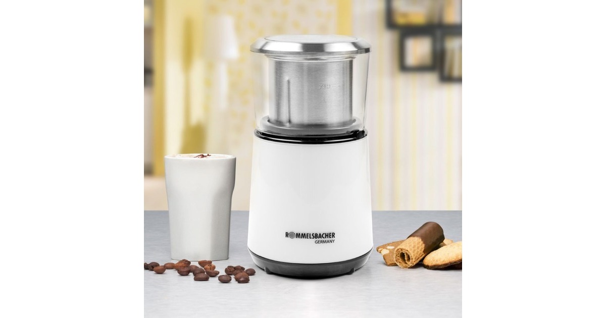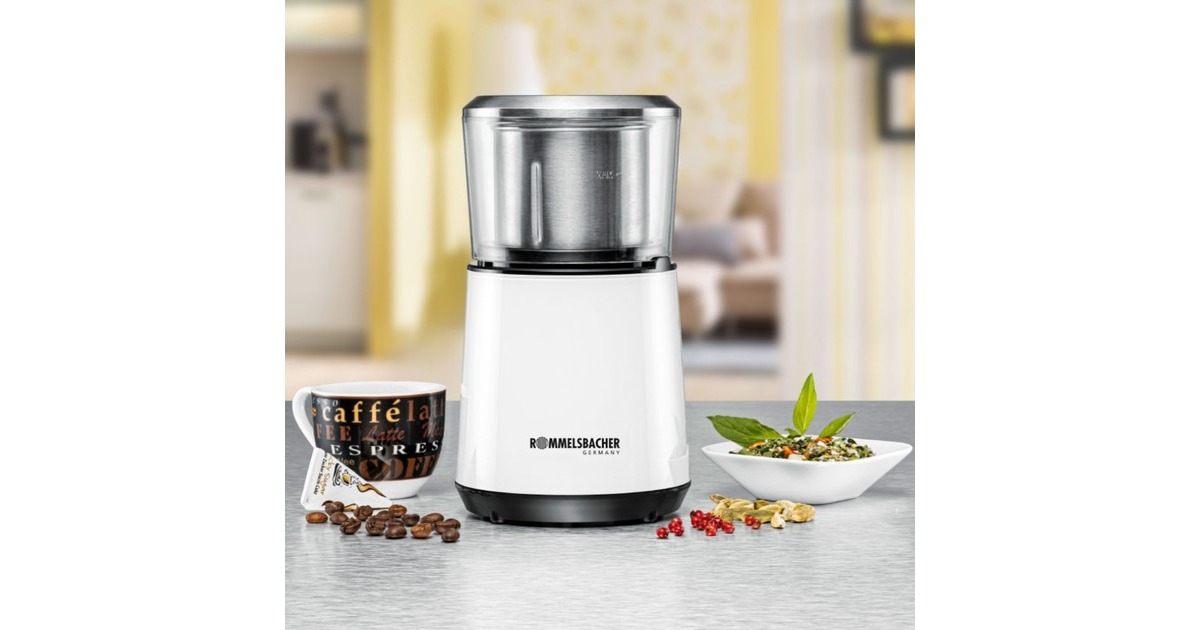 Die elegante Kaffeemühle EKM 125 von Rommelsbacher eignet sich nicht nur perfekt zum Mahlen und Zerkleinern von Kaffeebohnen, sondern auch von Gewürzen, Nüssen, Zucker und mehr. Der Arbeitsbehälter ermöglicht mit einem 4-flügeligen Universalmesser eine variable Nutzung. Die Handhabung ist sicher und einfach, da sich der Mahlgrad über die Mahldauer individuell einstellen lässt. Der leistungsstarke 200 Watt Motor arbeitet leise. Der abnehmbare Behälter besteht aus robustem Edelstahl und fasst 50g Bohnen. Robuste Materialien, durchdachte Technik und die Tatsache, dass alle abnehmbaren Teile spülmaschinengeeignet sind, dies alles sorgt für einen hohen Bedienkomfort. Die EKM 125 ist ein praktischer Küchenhelfer, der überall Einsatz findet.Art.-Nr.: 1584129
