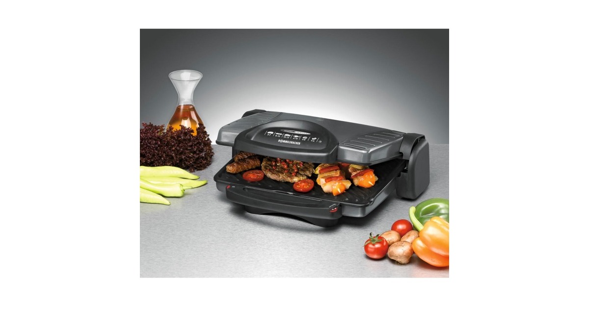 Ob in der Küche, im Garten, auf dem Balkon oder auf der Terrasse - in wenigen Minuten ist der Rommelsbacher Multi Grill KG 1800 bereit und der Grillspaß kann beginnen. Die drei unterschiedlichen Grillpositionen bieten für jede Zubereitungsart die richtige Lösung. Das Grillen in Kontaktgrill-Stellung sorgt für kurze Garzeiten durch direkte Hitzeübertragung. Gegrilltes erhält dabei die beliebten Grillstreifen. Das Toasten in der Überbacken-Stellung liefert lecker gratinierte Baguettes, Toasts und Gemüse. Durch Aufklappen verdoppelt sich die Grillfläche und das Gerät steht im Nu als Tisch- und Partygrill zur Verfügung. Die antihaftbeschichteten Grillplatten des Kontaktgrills KG 1800 sind mit einer Fettablaufrinne ausgestattet, so dass in allen Positionen gesundes, fettarmes Grillen möglich ist. Zudem sind die Grillplatten zur leichten Reinigung abnehmbar. Der KG 1800 ist damit ein Multitalent, das in keinem Haushalt fehlen sollte.Art.-Nr.: 995880