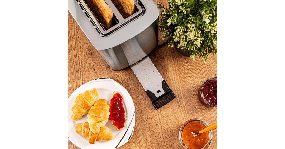 Der hochwertige Toaster TO 850 aus der Sunny Frühstücksserie ist ein Highlight für jede Küche. Durch sein zeitlos geradliniges Design fügt er sich harmonisch in jede Küche ein. Mit der Countdown Anzeige sieht man auf den ersten Blick, wie lange es noch dauert, bis die beiden knusprigen Toastscheiben mit der gewünschten Bräunung aus den extra-breiten Schlitzen springen. Das auffällige große LED-Display mit Touch Contol Sensoren macht die Bedienung spielend einfach. Durch die intelligente Röstzeitsteuerung ist die Bräunung bei jedem Durchgang perfekt, und die Intensität kann in 9 Stufen nach den persönlichen Vorlieben gewählt werden. Die Brotscheiben von klein bis XL werden automatisch zentriert, so dass jede Seite perfekt getoastet wird. Mit der Pausetaste lässt sich der Toastvorgang unterbrechen, um den Bräunungsfortschritt zu kontrollieren. Eine Auftaustufe für gefrorene Brotscheiben und eine praktische Aufwärmfunktion, falls man Toast nochmals erwärmen möchte, plus ein abnehmbarer, zusammenklappbarer Brötchenaufsatz sind ebenfalls mit an Bord. Auch die Sicherheit kommt nicht zu kurz, der Toastvorgang lässt sich über eine Stopptaste jederzeit vorzeitig beenden. Die Krümelschublade macht die anschließende Reinigung einfach. Mit der Kabelaufwicklung lässt sich der Toaster ganz praktisch bis zum nächsten Einsatz verstauen. Der TO 850 ist ein Teil der attraktiven Sunny Frühstücksserie, die neben diesem Toaster der Extraklasse auch eine Filterkaffeemaschine und einen turboschnellen Wasserkocher anbietet.Art.-Nr.: 100043274