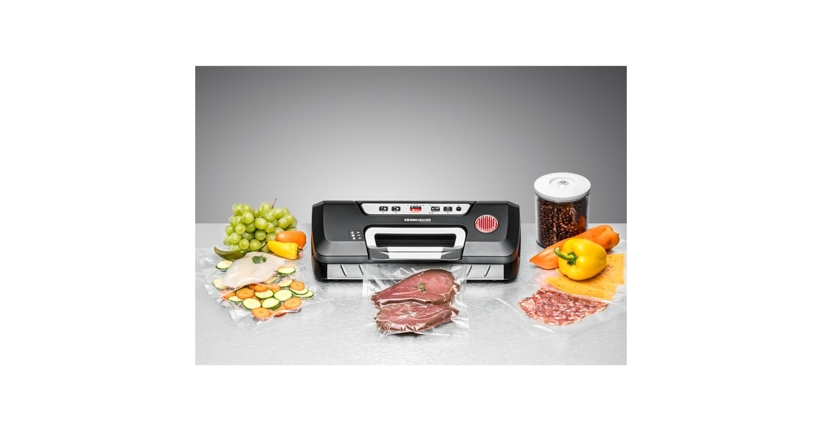 Der außergewöhnliche Vakuumiergerät VAC 285 überzeugt durch seine durchdachte Ausstattung. Der große Handgriff ermöglicht eine komfortable Einhand-Bedienung, das Gerät lässt sich leicht öffnen und sicher schließen. Ob kleiner oder großer Haushalt, der Vakuumierer ist flexibel einsetzbar und auch für den Langzeitbetrieb geeignet. Ein Großeinkauf lässt sich ohne Zwischenpausen verarbeiten, die Ernte aus dem Gemüsegarten kann zügig verpackt werden. Die leistungsstarke Pumpe saugt bis zu 97 % der Luft aus den speziellen Vakuumierbeuteln und versiegelt diese dann vollautomatisch mit einer stabilen Naht und das alles in nur einem Arbeitsgang. Mit der in 2 Stufen einstellbaren Versiegelungsdauer lässt sich der Vakuumiervorgang individuell an die zu verarbeitenden Lebensmittel anpassen. Für besonders druckempfindliche Nahrungsmittel steht eine manuelle Absaug- und Versiegelungsfunktion zur Verfügung. Besonders praktisch ist das Sichtfenster, so kann die korrekte Positionierung des Beutels im Gerät kontrolliert werden. Mit der Funktion „Behälter vakuumieren“ können selbst sensible und flüssige Lebensmittel in speziellen Vakuumiergefäßen vakuumverpackt und lange frisch gehalten werden. Durch Vakuumieren wird die Haltbarkeit von Lebensmitteln um das 3 bis 5-fache verlängert, darum sollte dieses praktische Gerät in keinem Haushalt fehlen! Tipp: Das Gerät kann auch zum Vorbereiten der Lebensmittel für Sous Vide Garen, genutzt werden.Art.-Nr.: 1519535