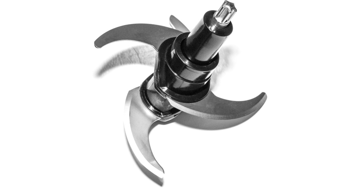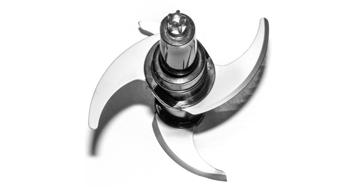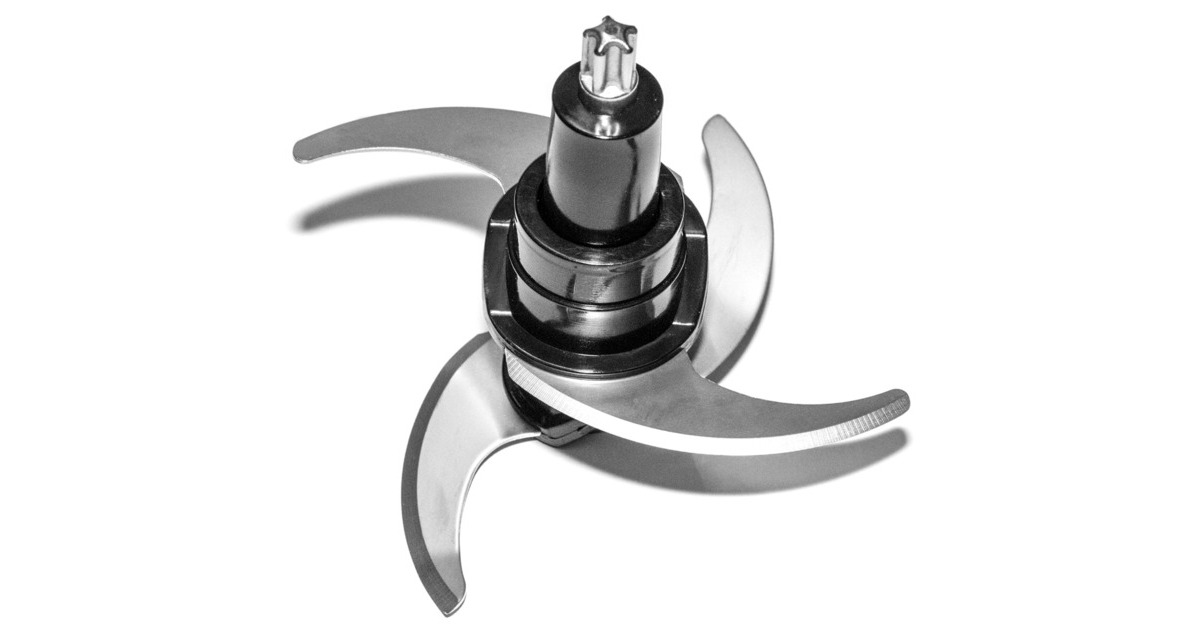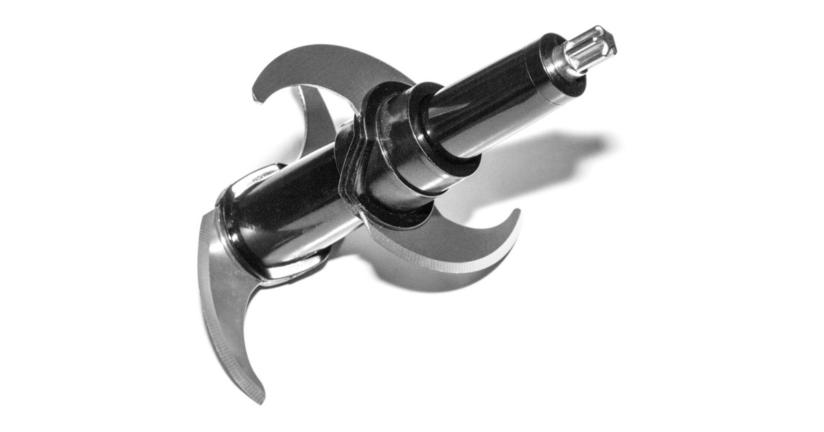 Robustes Antriebssystem: Messerachse und Motorkupplung aus Metall |