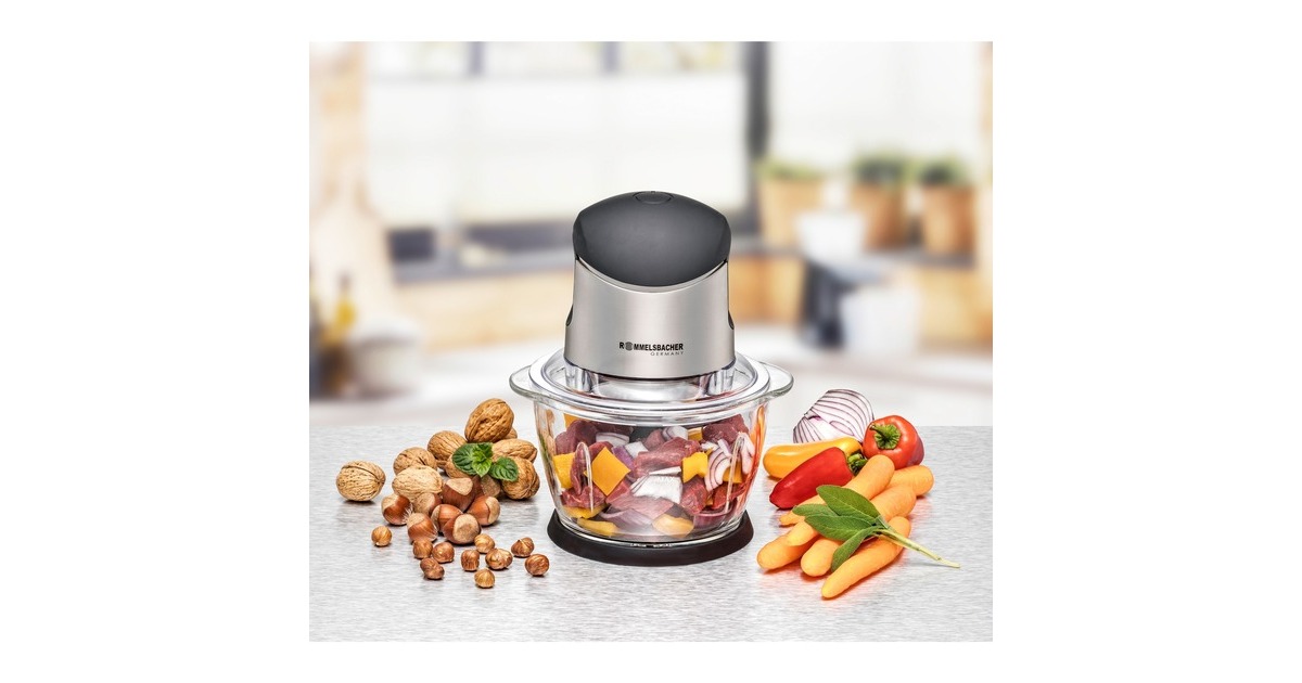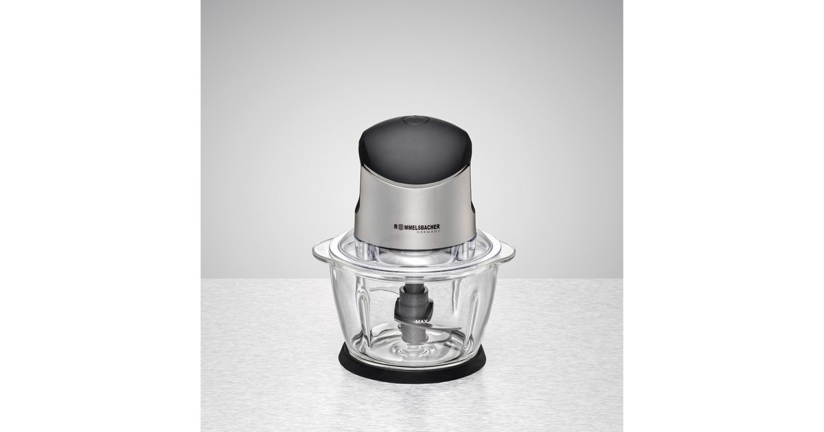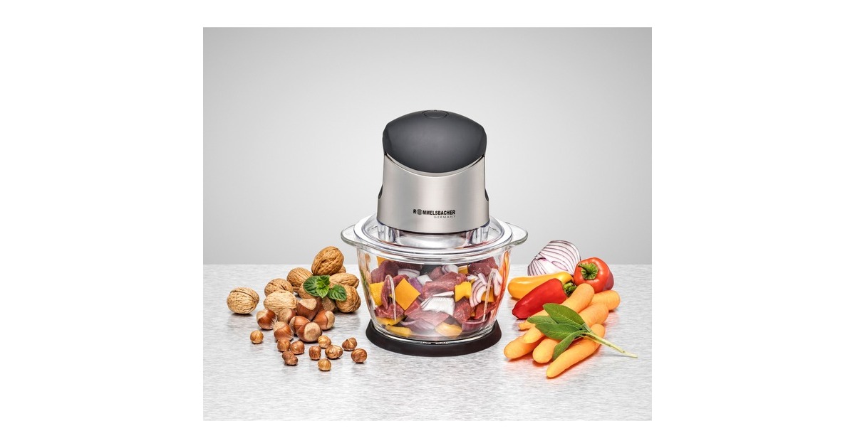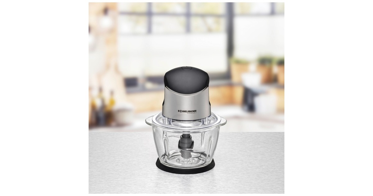 Mit dem hochwertigen Multi Zerkleinerer MZ 400 von Rommelsbacher macht Küchenarbeit Spaß. Hacken, Schneiden, Pürieren – mit einem leichten Druck auf die Einschalttaste verarbeitet das Gerät Zwiebeln, Kräuter, Gemüse, Obst, Nüsse, Fleisch & mehr. Im Handumdrehen entstehen gesunde, vitaminreiche Rohkostsalate, cremige Brotaufstriche, fantasievolle Dips und Pesto. Auch Gewürzmischungen und Gewürzsalze lassen sich hervorragend darin herstellen. Das 4-flügelige Messer aus rostfreiem Edelstahl arbeitet sehr effizient und überzeugt durch perfekte Ergebnisse. Der klare Glasbehälter ist äußerst robust, lebensmittelneutral, hygienisch und sehr leicht zu reinigen. Er hat ein Fassungsvermögen von einem Liter. Ein kraftvoller Motor meistert alle Anforderungen leise und vibrationsarm und das integrierte Sicherheitssystem schützt vor unabsichtlicher Aktivierung. Zur leichten Reinigung können alle abnehmbaren Teile in die Spülmaschine. Art.-Nr.: 1519346