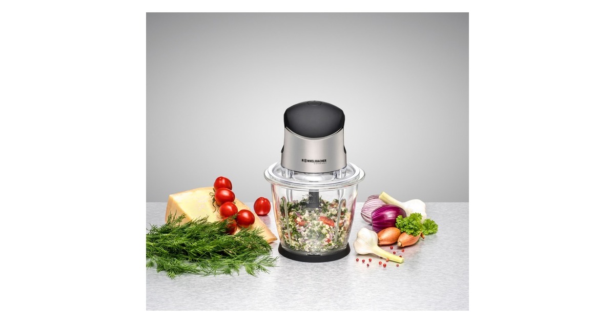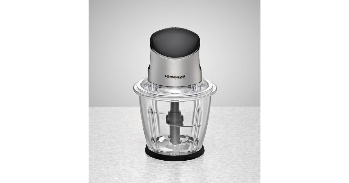 Mit dem hochwertigen Multi Zerkleinerer MZ 500 von Rommelsbacher macht Küchenarbeit Spaß. Hacken, Schneiden, Pürieren - mit einem leichten Druck auf die Einschalttaste verarbeitet das Gerät Kräuter, Zwiebeln, Käse, Fleisch, Obst, Beeren, Nüsse (ohne Schale), Kartoffeln, Gemüse, Rohkost & mehr. Im Handumdrehen entstehen gesunde, vitaminreiche Rohkostsalate, cremige Brotaufstriche, fantasievolle Dips und Pesto. Auch Gewürzmischungen und Gewürzsalze lassen sich hervorragend darin herstellen. Das 4-flügelige Messer aus rostfreiem Edelstahl arbeitet sehr effizient und überzeugt durch perfekte Ergebnisse. Der klare Glasbehälter ist äußerst robust, lebensmittelneutral, hygienisch und sehr leicht zu reinigen. Er hat ein Fassungsvermögen von 1,5 Litern. Ein kraftvoller Motor meistert alle Anforderungen leise und vibrationsarm und das integrierte Sicherheitssystem schützt vor unabsichtlicher Aktivierung. Zur leichten Reinigung können alle abnehmbaren Teile in die Spülmaschine. Art.-Nr.: 1519347