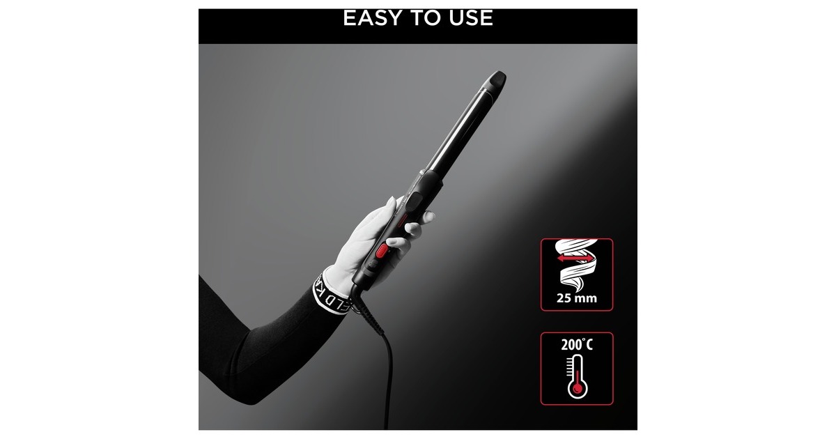 Der Rowenta x KARL LAGERFELD 25mm Lockenstab CF321L schafft luxuriöse Locken und wunderbar fließende Wellen durch eine exklusive "Keratin & Glow"-Beschichtung. Das haarstärkende Protein Keratin verbindet sich mit Turmalin, der durch seinen natürlichen Ionen ausströmenden Effekt für mehr Glanz sorgt und statische Aufladung und Kräuseln reduziert. Dieser Lockenstab ist mit einem Hochleistungsheizsystem ausgestattet, das für eine konstante Temperatur von 200 °C sorgt. Praktische Eigenschaften runden das Frisiererlebnis ab: ein 360°-Drehnetzkabel für eine praktische Handhabung, eine kühl bleibende Spitze für mehr Sicherheit und ein Sicherheitsständer für noch mehr Komfort.Art.-Nr.: 1856872