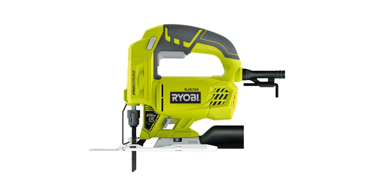 Die Ryobi Stichsäge RJS720-G ist eine leistungsstarke Stichsäge mit innovativer Bauform für Schnitte in Holz bis 72mm. Sie überzeugt mit sehr geringen Vibrationswerten, hohem Anwenderkomfort, exakteren Schnitten, einem Sicherheitsschalter mit Einschaltsperre und herunterklappbarer Führungshilfe. Das werkzeuglose Sägeblatt-Schnellwechselsystem ermöglicht den Sägeblattwechsel in Sekunden. Die zuschaltbare Spanblaseinrichtung sorgt für freie Sicht auf die Schnittlinie. Die GripZone, das sind gummierte Anti-Vibrations-Griffflächen, sorgen für komfortablen Halt, und die LED-Beleuchtung für optimale Sicht auf den Schnittbereich. Die Bodenplatte ist aus stabilem Stahl gefertigt und lässt sich für Schrägschnitte nach rechts und nach links neigen.Art.-Nr.: 1528322