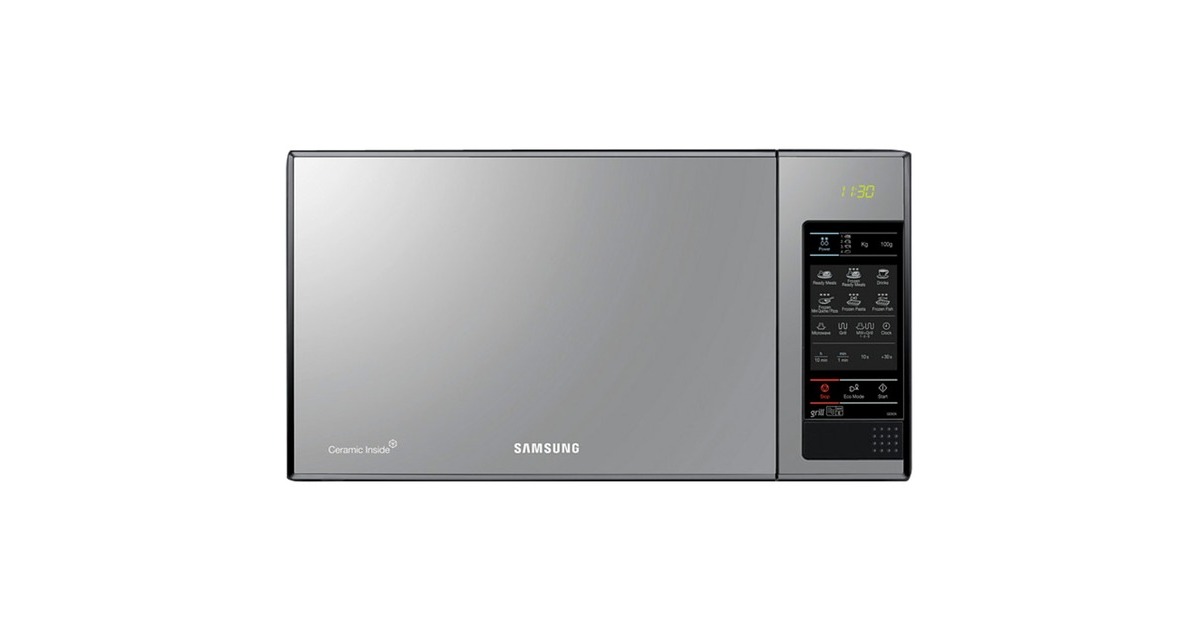Die Samsung Mikrowelle GE83X überzeugt mit 23 Litern Nutzinhalt und Grillfunktion. Ihre Keramik-Innenbeschichtung sorgt für hohe Beständigkeit gegen Kratzer und verhindert, dass Gerüche und Geschmäcker aufgenommen und beim nächsten Kochvorgang übertragen werden. Außerdem haften Fett und Schmutz nicht an der glatten Oberfläche und lassen sich ohne zu schrubben mit einem feuchten Tuch abwischen. Die Uhrzeitanzeige der GE83X lässt sich im 12- oder 24-Stunden-System anzeigen. Für mehr Sicherheit sorgt die Kindersicherung.Art.-Nr.: 100044592