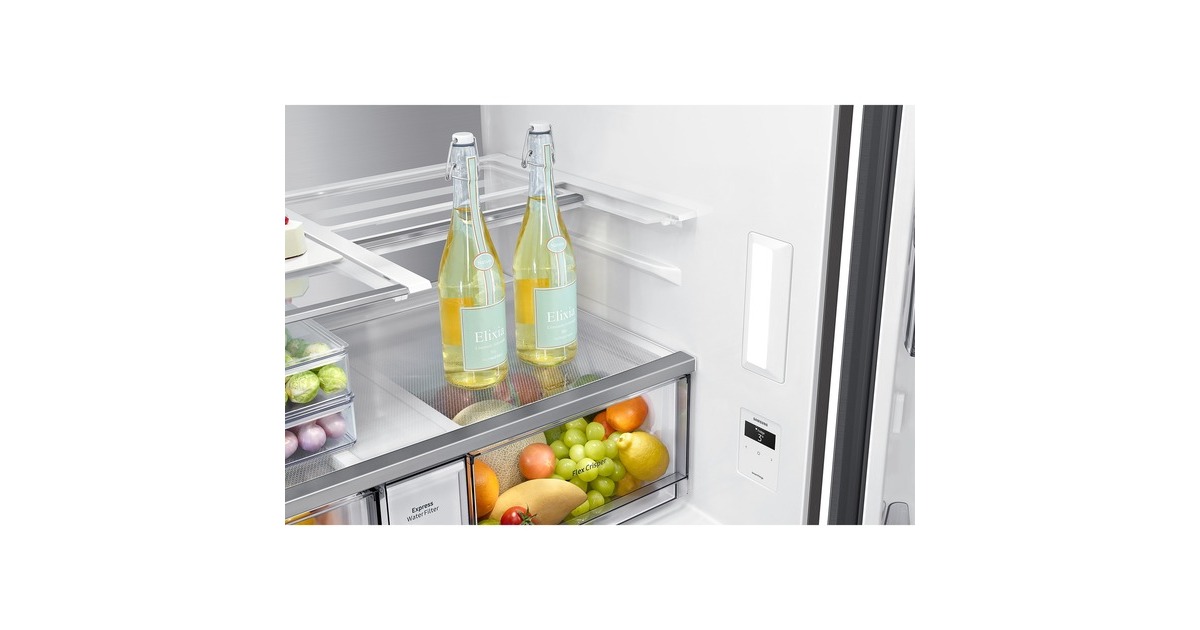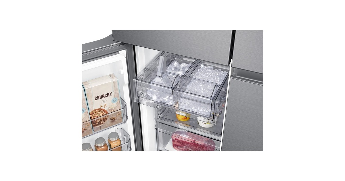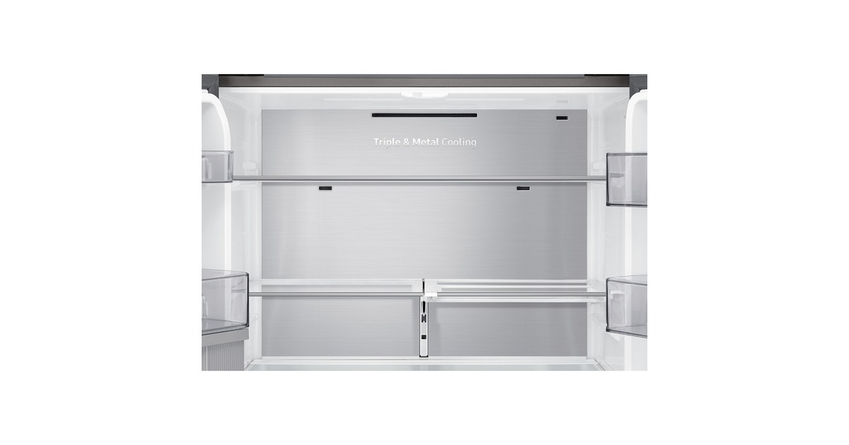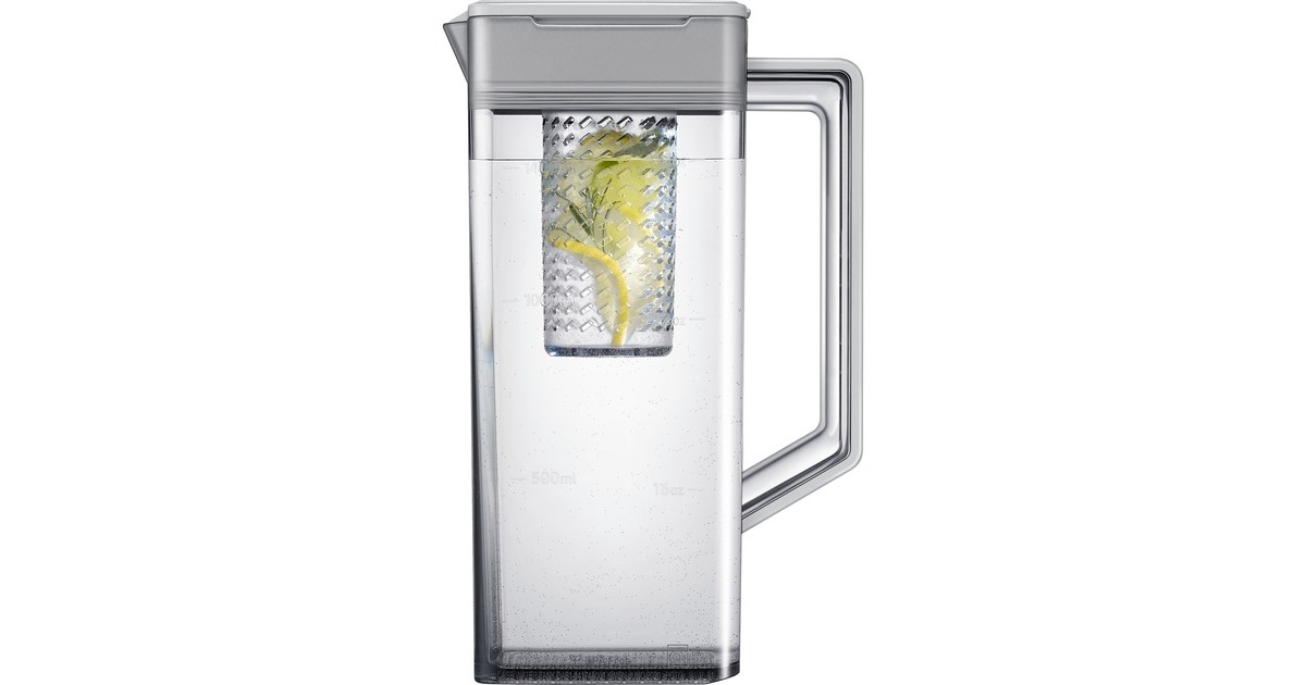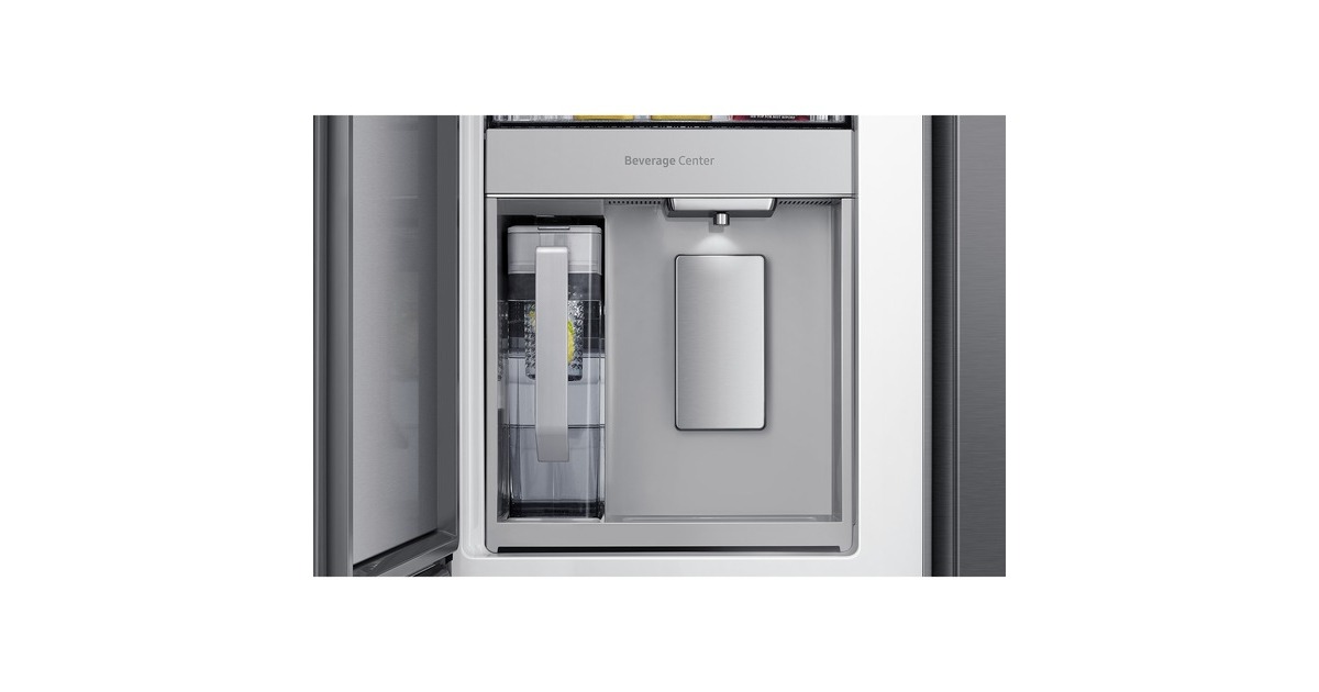 Innenliegendes Beverage Center mit Dual Water Dispenser & Dual Ice Maker; Dual Water Dispenser: Gefiltertes Wasser auf Knopfdruck & im automatisch nachfüllenden Pitcher mit Aroma-Infuser; Dual Ice Maker: Ice Cubes & Ice Bites |