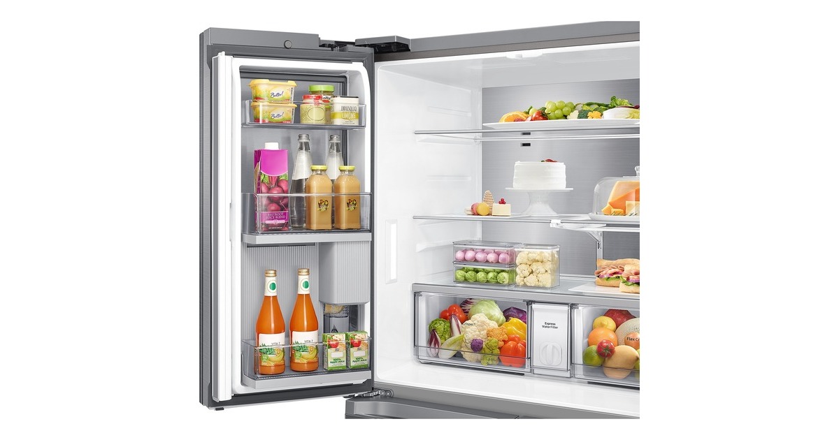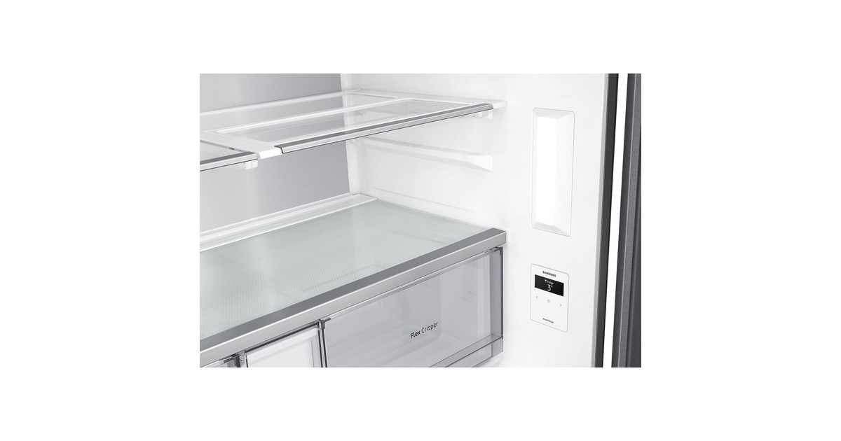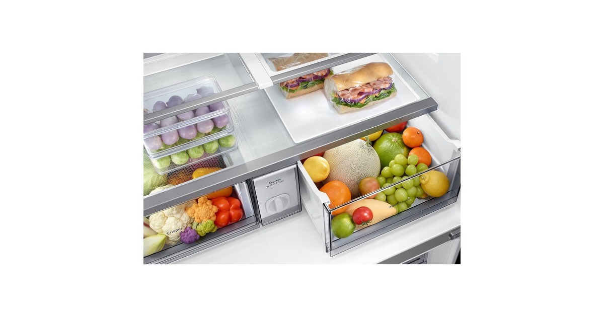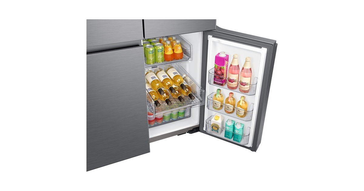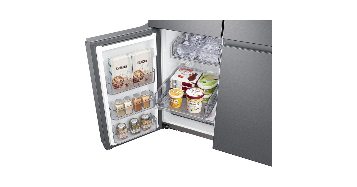 Innenliegendes Beverage Center mit Dual Water Dispenser & Dual Ice Maker; Dual Water Dispenser: Gefiltertes Wasser auf Knopfdruck & im automatisch nachfüllenden Pitcher mit Aroma-Infuser; Dual Ice Maker: Ice Cubes & Ice Bites |