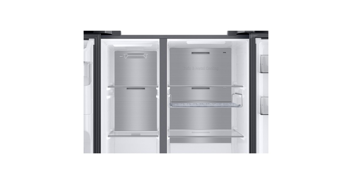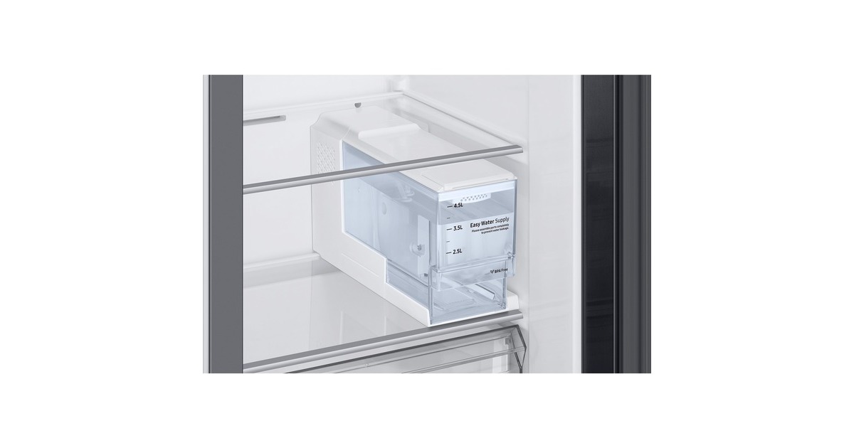 Der Side-by-Side Samsung RS6GA854CB1/EG ist mit einem Gesamtnutzinhalt von 635 Litern optimal für den großen Haushalt geeignet und überzeugt mit diversen Features. Im 409 Liter umfassende Kühlbereich mit Multi-Airflow-System haben frische Lebensmittel auf vier Abstellflächen, in zwei Obst-/Gemüseschubladen sowie in fünf Türfächern jede Menge Platz, um übersichtlich gelagert zu werden. Der Gefrierbereich mit NoFrost+ gegen Eis- und Reifbildung umfasst 226 Liter und ist mit zwei Gefriergutschubladen sowie vier Abstellflächen und vier Türfächern ausgestattet. Für den besonderen Komfort sorgt der In-Door Icemaker mit integriertem Wassertank für Wasser, Eiswürfel und Crushed Ice auf Knopfdruck. Darüber hinaus überzeugt der RS6GA854CB1/EG unter anderem mit PowerFreeze- und PowerCool-Funktion, Urlaubsschaltung sowie einem Smart Sensor. Mit einem Stromverbrauch von 225 kWh im Jahr ist der RS6GA854CB1/EG in die Energieeffizienzklasse C eingestuft.Art.-Nr.: 1910688