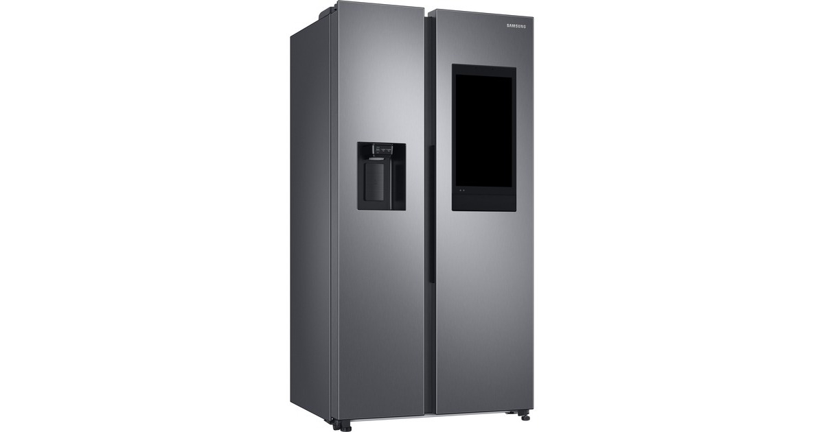 Der Side-by-Side Samsung RS6HA8880S9/EG ist mit einem Gesamtnutzinhalt von 614 Litern optimal für den großen Familien-Haushalt geeignet und überzeugt mit zahlreichen Features. Die Kamera im Inneren des Kühlteils zeigt jederzeit und überall die gekühlten Lebensmittel auf kompatiblen Mobilgeräten an, sodass man selbst beim Einkaufen oder von unterwegs einen raschen Blick in den Kühlschrank werfen kann. Auch lassen sich Inhalte von kompatiblen Fernsehern oder Smartphones direkt auf den Family Hub streamen, damit Lieblingssendungen oder Urlaubsfotos auf dem 54,61 cm (21,5") großen FHD-Touchscreen direkt in der Küche erscheinen und sich komfortabel bedienen lassen. Der 389 Liter umfassende Kühlbereich des RS6HA8880S9/EG ist mit vier Abstellflächen, zwei Obst-/Gemüseschubladen sowie fünf Türfächern für die übersichtliche Lagerung frischer Lebensmittel ausgestattet. Der Gefrierbereich mit NoFrost+-Technologie gegen Eis- und Reifbildung umfasst 225 Liter und stellt ebenfalls vier Abstellflächen, zwei Gefriergutschubladen sowie zwei Türfächer zur Verfügung. Für den besonderen Komfort sorgt der In-Door Icemaker mit Festwasseranschluss für Wasser, Eiswürfel und Crushed Ice. Darüber hinaus bietet der RS6HA8880S9/EG die Funktionen Power Freeze und Power Cool, eine Urlaubsschaltung sowie einen Smart Sensor und Twin Cooling+. Mit einem Stromverbrauch von 406 kWh im Jahr ist der RS6HA8880S9/EG in die Energieeffizienzklasse F eingestuft.Art.-Nr.: 100044347