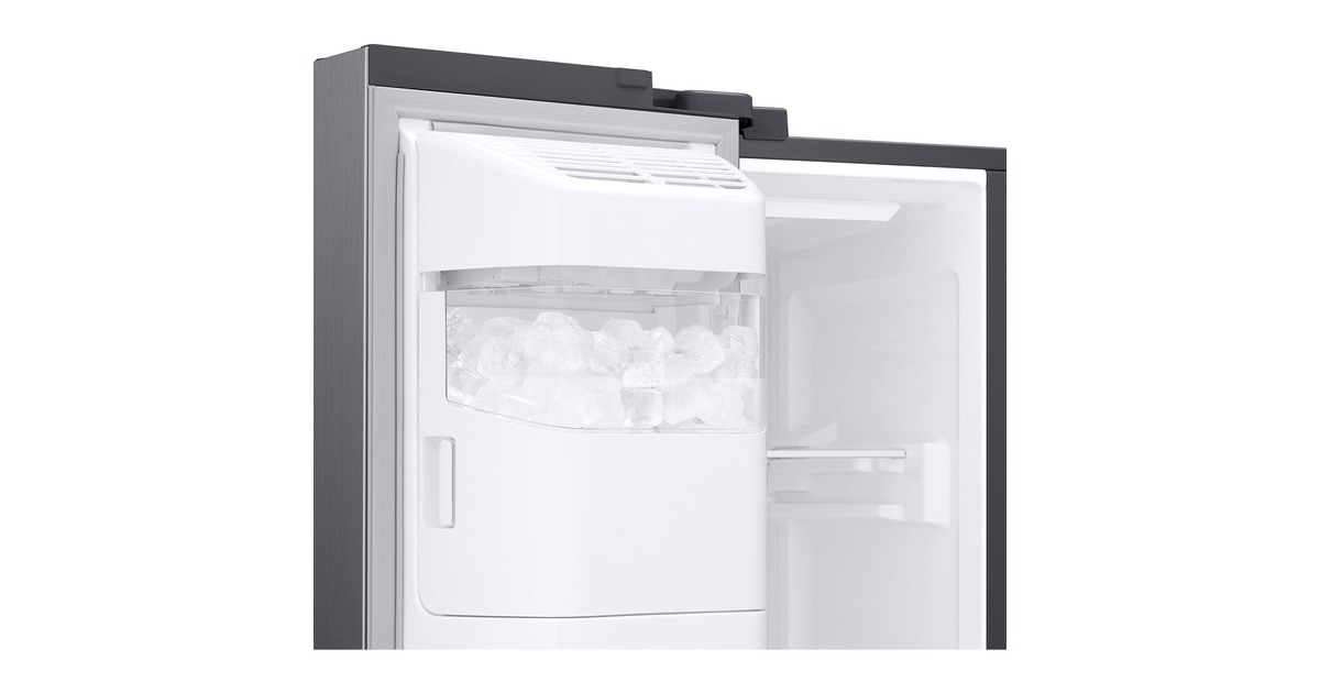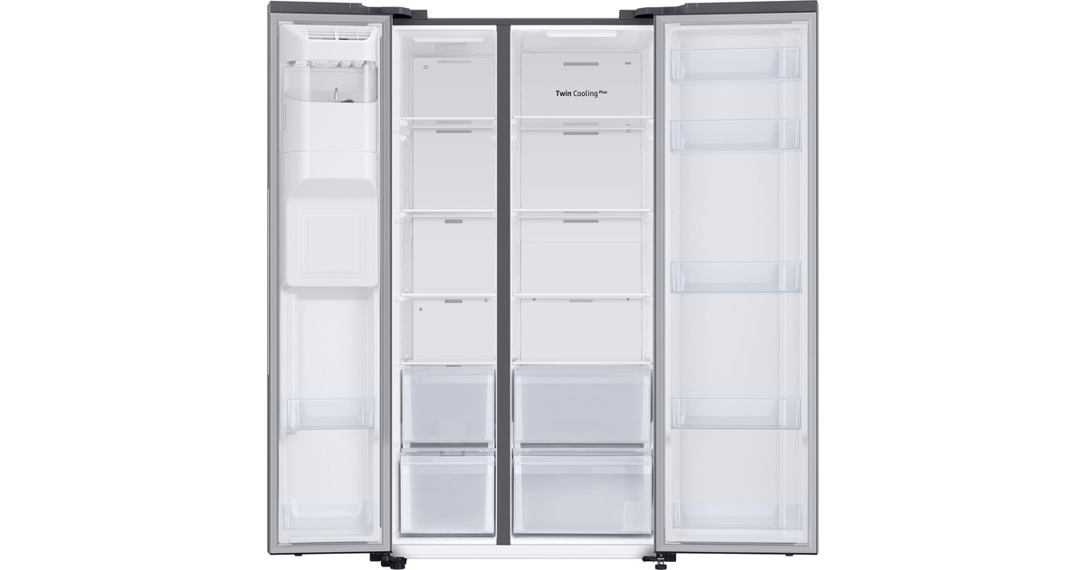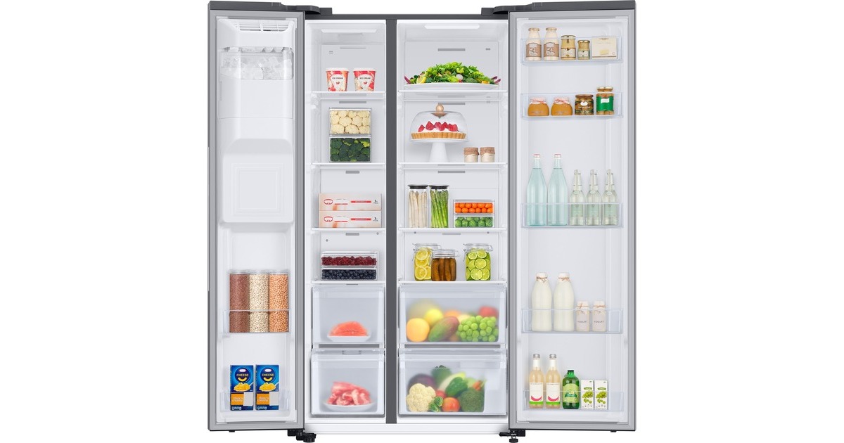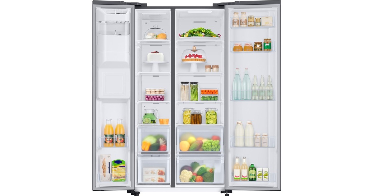 Der Side-by-Side Samsung RS6JA8811S9/EG ist mit einem Gesamtnutzinhalt von 634 Litern optimal für den großen Haushalt geeignet und überzeugt mit diversen Features. Im 409 Liter umfassende Kühlbereich mit Multi-Airflow-System haben frische Lebensmittel auf vier Abstellflächen, in zwei Obst-/Gemüseschubladen sowie in fünf Türfächern jede Menge Platz, um übersichtlich gelagert zu werden. Der Gefrierbereich mit NoFrost+ gegen Eis- und Reifbildung umfasst 225 Liter und ist mit zwei Gefriergutschubladen sowie vier Abstellflächen und zwei Türfächern ausgestattet. Smart Conversion bioetet maximale Flexibilität bei der Kühlung von Lebensmitteln, denn dank Twin Cooling+ lassen sich beide Bereiche des RS6JA8510S9/EG separat ansteuern und man kannst zwischen fünf verschieden Modi auswählen – zum Beispiel, um das linke Gefrierfach als normales Kühlfach zu nutzen, um mehr frische Produkte zu lagern, oder um eine Seite auszuschalten und Energie zu sparen. Darüber hinaus überzeugt der RS6JA8811S9/EG unter anderem mit PowerFreeze- PowerCool-Funktion, Urlaubsschaltung und Smart Sensor. Der platzsparender In-Door Icemaker hält dank Festwasseranschluss jederzeit gekühltes Wasser, Eiswürfel oder Crusehd-Ice auf Knopfdruck parat. Mit einem Stromverbrauch von 351 kWh im Jahr ist der RS6JA8811S9/EG in die Energieeffizienzklasse E eingestuft.Art.-Nr.: 1910692