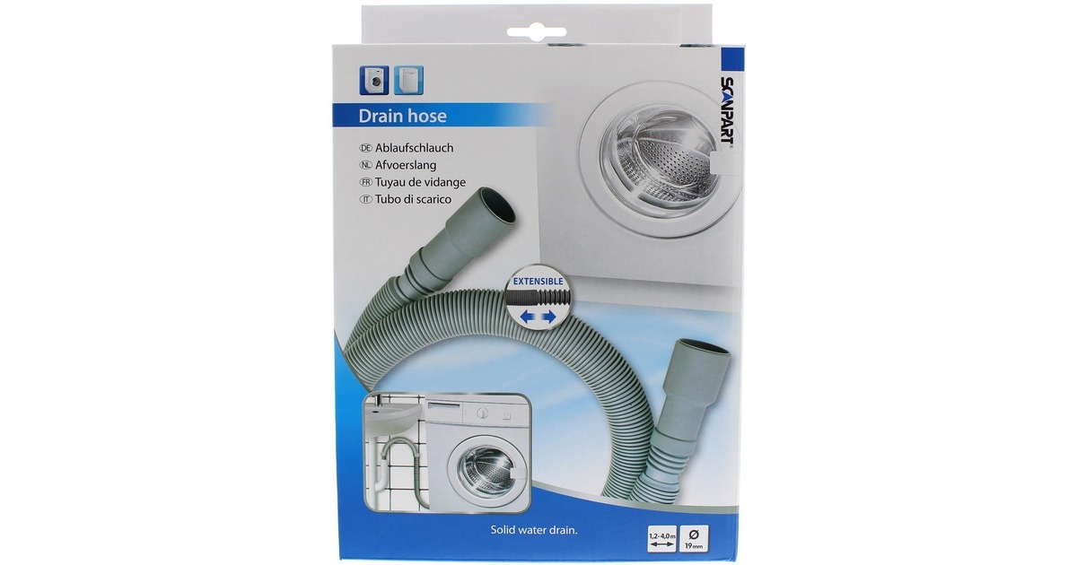 Der Ablaufschlauch Flex von Scanpart ist bis 4 Meter ausziehbar und eignet sich, um Waschmaschine oder Spülmaschine mit einem Abfluss zu verbinden.Art.-Nr.: 1718064