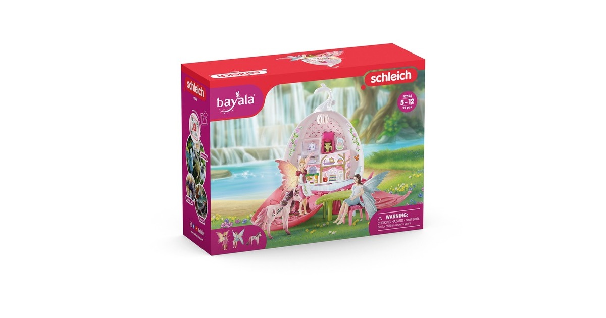 In der Elfencafé-Blüte gibt es alles, was man für einen netten kleinen Nachmittags-Kaffeeklatsch unter Elfen so braucht. Wenn Eyela und Feya die Blüte öffnen, bindet sich Feya als erstes die ansteckbare Schürze um und macht mit der Kaffeemaschine auf dem Tresen frischen Kaffee für ihre beste Freundin Eyela. Die setzt sich dabei gemütlich auf den Stuhl am Esstisch, auf dem schon ein Teller mit leckerem Blaubeerkuchen auf sie wartet. Und auch das süße rosafarbene Einhornfohlen mit dem Cupcake-Tattoo und der Glitzer-Mähne bekommt ein Stück Blaubeerkuchen aus der Vitrine auf dem Tresen. Den liebt es über alles. Wenn Feya ihre Freunde versorgt hat, trinkt sie gern selbst noch einen Kaffee. Danach dekorieren die drei gemeinsam mit bunten Stickern, die man immer wieder verwenden kann, den Tresen und die Wände hübsch. Bevor sie gehen, schließen sie die Elfencafé-Blüte einfach wieder, bis sie das nächste Mal hier einen entspannten Nachmittag verbringen.Art.-Nr.: 1832688