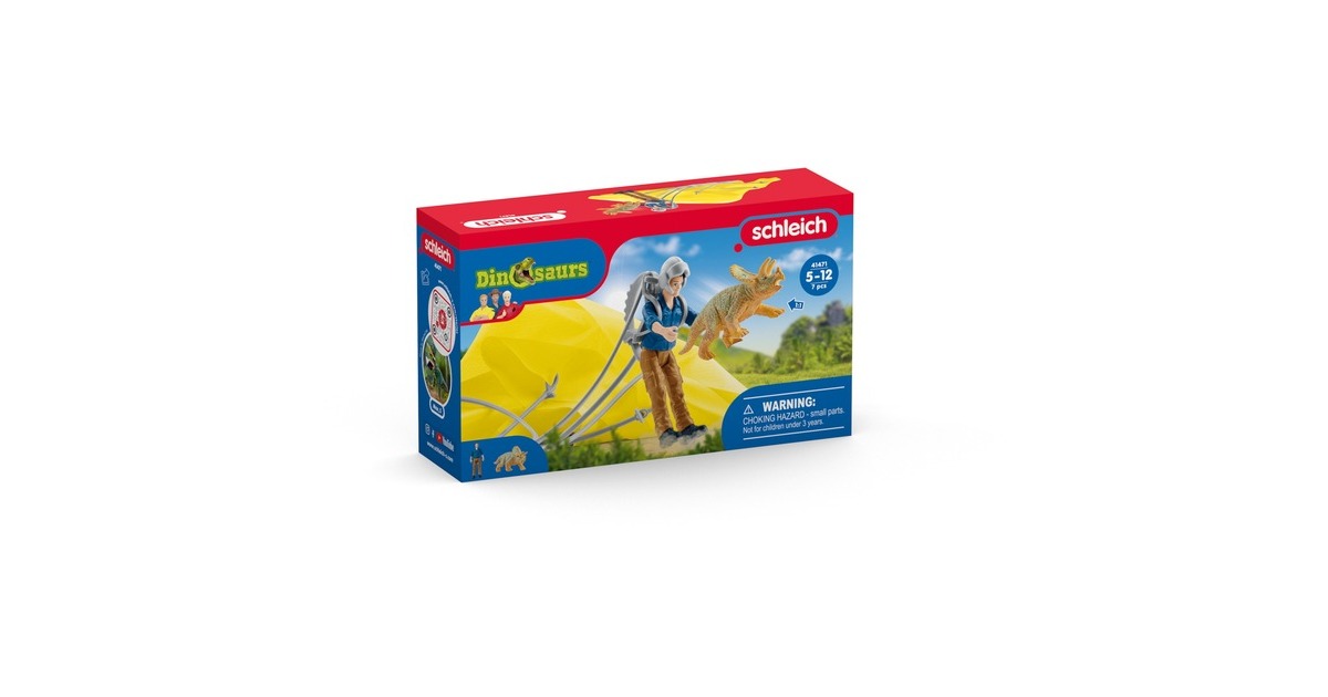 1 Fallschirm, 1 Fallschirm-Rucksack, 2 Fallschirm-Seile, 1 Ranger Maxx, 1 Pilotenhelm, 1 Mini-Triceratips |