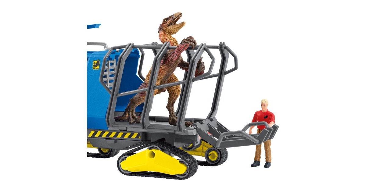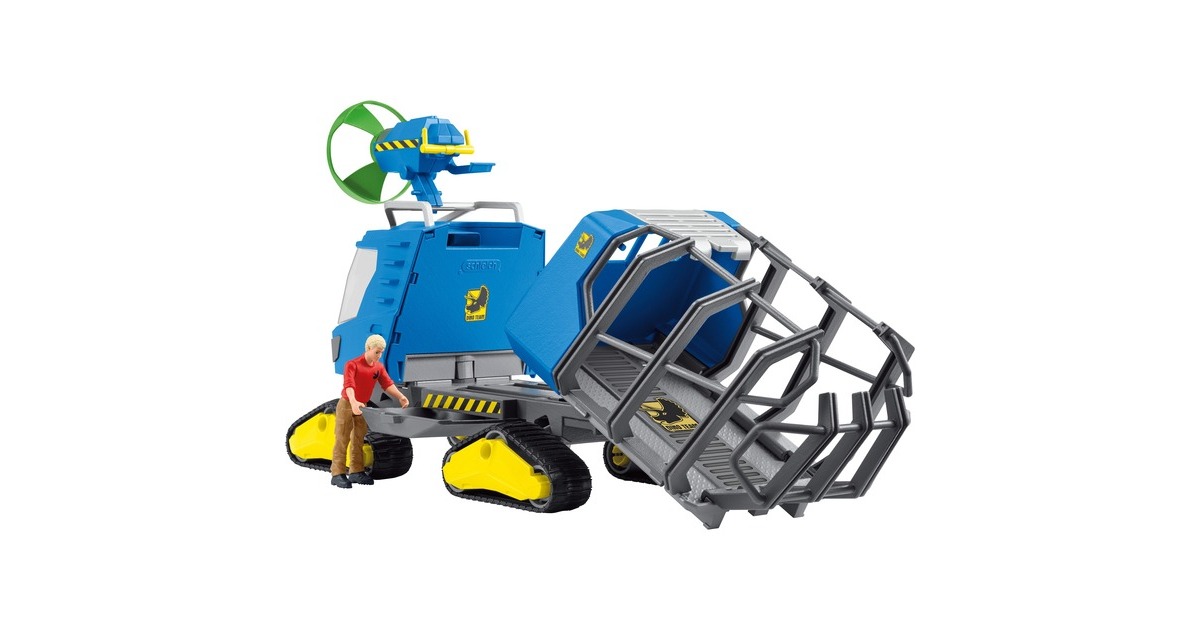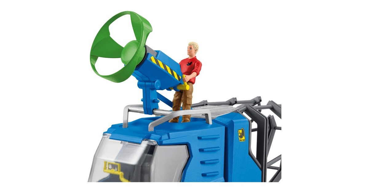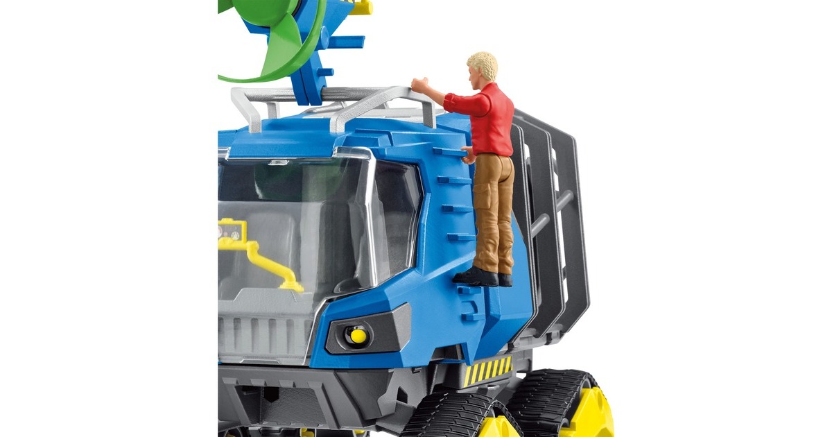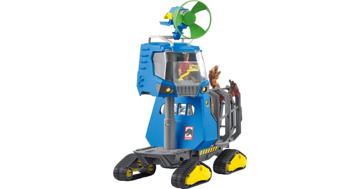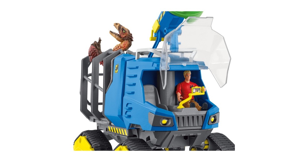 Was hat Flynn denn da von seiner Forschungsmission mitgebracht? Er hat gerade einen gefährlichen Dakotaraptor gefangen und in den Käfig des Zugwagens geladen. Das ist auch besser so, denn der riesige Dinosaurier sieht aus, als könnte er ein Problem werden. Flynn will auf keinen Fall, dass sich jemand in seinen Reißzähnen verfängt! Wie hat er es geschafft, den Dakota-Raptor zu fangen? Von der Sicherheit des Raupenfahrzeugs aus konnte er das Fahrerhaus anheben und so einen guten Überblick über die Umgebung gewinnen und den Dinosaurier von oben betrachten. Dann setzte er die Tornadokanone auf dem Dach in der richtigen Position an und wartete auf den richtigen Moment, um den Dinosaurier zu betäuben. Nachdem er von der Tornadokanone getroffen wurde, war der Dakota-Raptor ganz zahm und konnte in den Käfig geladen werden. Dieses Spielset aus der Themenwelt Schleich Dinosaurs verfügt über eine drehbare Kanone auf dem Dach, die abgefeuert werden kann.Art.-Nr.: 1908782