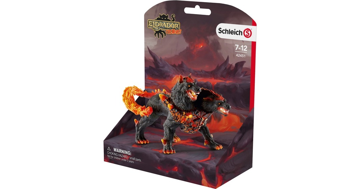 Vorsicht, extrem bissig! Wer die Lavawelt betreten möchte, muss erst einmal am Höllenhund vorbei. Und das ist gar nicht so einfach. Er kann nicht nur ohrenbetäubend laut bellen und knurren, sondern besitzt auch zwei Köpfe. Damit kann er es mit zwei Gegnern gleichzeitig aufnehmen! Wenn er mit seinem Schwanz wedelt, sollten Eindringlinge schnell das Weite suchen, denn im Kampf setzt er ihn als glühende Feuerpeitsche ein! Eine Rüstung aus höllisch-heißem Magma gibt ihm außerdem ausreichend Schutz, kein Wunder dass der Höllenhund vor nichts und niemandem Angst hat! Naja, eine Sache lässt ihn schon schlecht schlafen: die Angst, dass der ewige Lavastrom irgendwann versiegen könnte.Art.-Nr.: 1438758