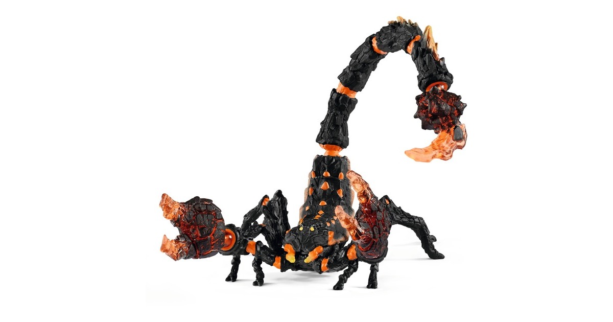 Unheimlich gefährlich – und sehr geduldig: Der Lavaskorpion lauert gut versteckt in den zerklüfteten Felsen der Lava Welt auf seine Opfer, und ist jederzeit zum Angriff bereit. Seine Hülle besteht aus hartem, erkalteten Lavagestein, in seinem Inneren brodelt aber flüssige heiße Lava. Kommt ihm ein Gegner zu nah, attackiert er ihn ohne Vorwarnung mit seinen glühenden, ultrastarken Greifzangen. Wer dann nicht stillhält, bekommt seinen glühenden Stachel zu spüren. Im Gefecht gegen mehrere Angreifer setzt der Lavaskorpion ebenfalls seinen riesigen Stachelschwanz ein, den er dann wie eine furchtbare Keule in alle Richtungen schwingen kann. Weil er sich so gut verteidigen kann, fürchtet er nichts und niemanden. Das behauptet er zumindest immer. Denn vor einer Kreatur hat er insgeheim Angst: Der Eisdrache mit seinem Eishauch könnte ihm gefährlich werden – und den Lavaskorpion zur Eisstatue pusten!Art.-Nr.: 1531925