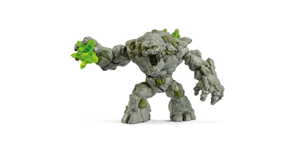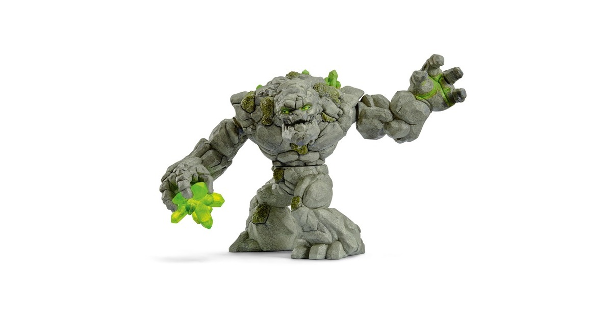 Den grimmigen Koloss hört man oft schon von weitem. Wenn er sich bewegt, bebt ganz Eldrador! Weil das Steinmonster so schwer und riesig ist, kann er sich nur langsam fortbewegen. Außerdem ist er nicht besonders schlau, dafür aber unglaublich stark! Er kann seinen Oberkörper komplett um die eigene Achse drehen, und so mit seinen mächtigen Steinfäusten eine Menge Unheil und Schaden anrichten! Seine Kraft holt er sich vom großen Kristall, den er auch als gefährliche Waffe einsetzt. Er wird von Tag zu Tag kräftiger, weil er immer mehr grüne Kristalle aus der Steinwelt frisst. Mittlerweile hat er schon so viele verputzt, dass sie ihm sogar aus dem Rücken wachsen! Sein größter Feind ist er selbst. Eigentlich ist er fast unbesiegbar. Wenn er aber einmal stürzt, dauert es bei seinem Gewicht eine Ewigkeit, bis er sich wieder aufgerichtet hat.Art.-Nr.: 1438817