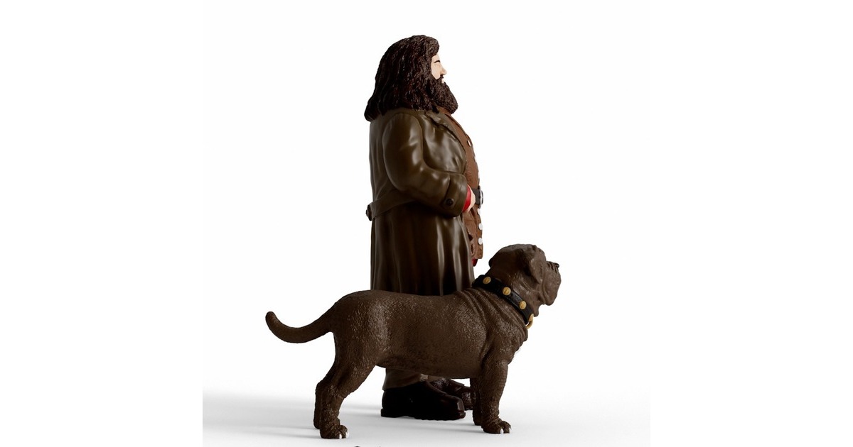 Rubeus Hagrid ist ein Halbriese und Wildhüter und Hüter der Schlüssel von Hogwarts. Er wird wird hier von seinem geliebten Hund Fang begleitet. Fang ist aber nicht so gefährlich, wie er auf den ersten Blick aussieht: Er hat oft Angst vor kleinen Anzeichen für Gefahr. Dieses Set aus zwei Schleich-Figuren gehört zur Reihe Wizarding World, die Charaktere aus der Welt von Harry Potter enthält.