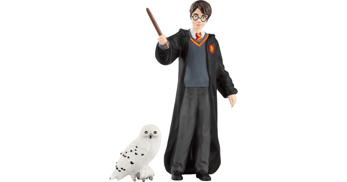 Der Zauberschüler Harry Potter trägt seine Gryffindor-Schuluniform, seine Zauberstab und seine ikonische Brille. Er wird von seiner ewig treuen Schnee-Eule Hedwig begleitet. Dieses Set aus zwei Schleich-Figuren gehört zur Reihe Wizarding World, die Charaktere aus der Welt von Harry Potter enthält.