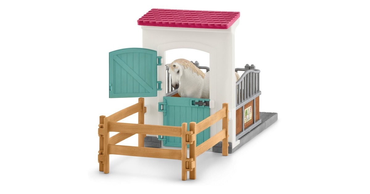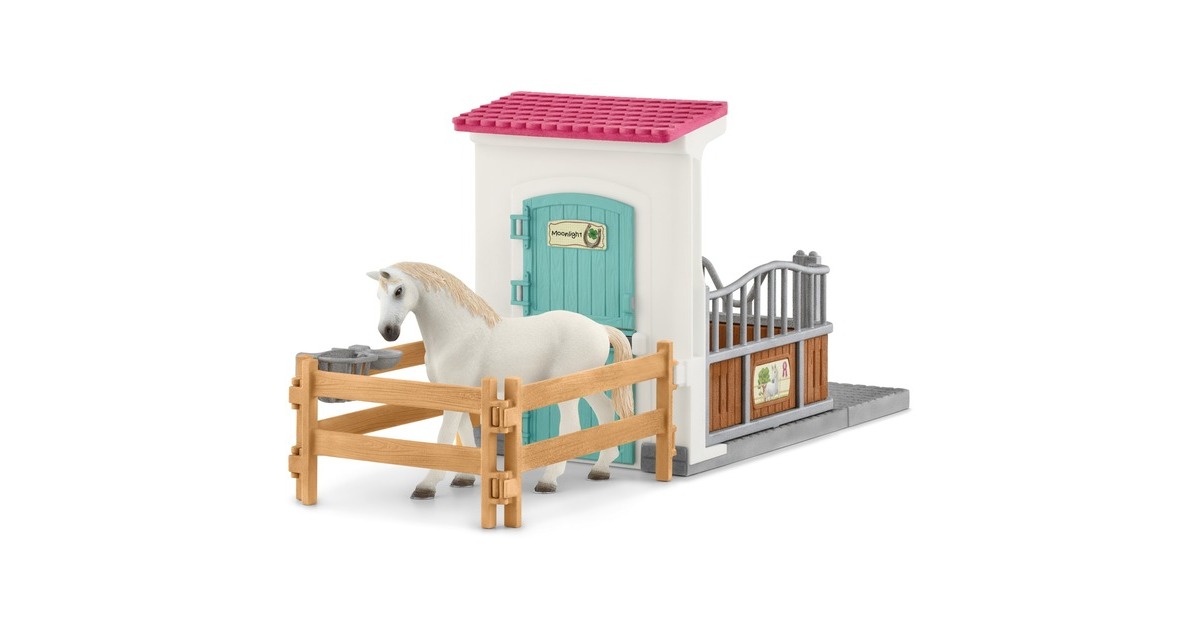 Nach dem ganzen Ausreiten und Springen freut sich jedes Pferd auf eine Pause. Am besten geht das in der gemütlichen Pferdebox. Hier gibt es wirklich alles, was das Pferdeherz begehrt: An der Raufe kann man fressen und die Tränke löscht selbst den größten Pferdedurst. Die Pferdebox ist modular erweiterbar und passt zum Pferdestall aus der Serie Horse Club.