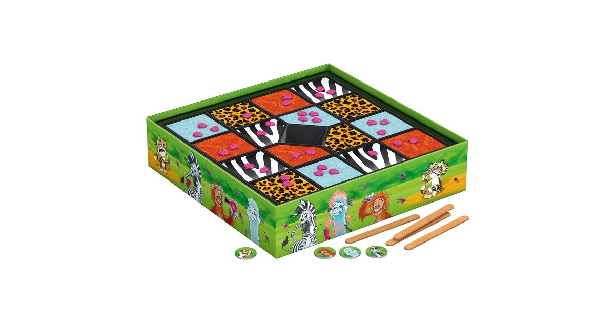 Alarm im Zoo: Wo kommen denn die ganzen Flöhe her? Die Tiere wie der Orang-Utan, der Jaguar, das Lama oder das Zebra sind nur noch mit Kratzen beschäftigt. Da muss Hilfe her - und dafür sind schnelle Reaktionen und gutes Zielvermögen gefragt, denn die Flöhe hopsen blitzschnell hierhin und dorthin. Wer schafft es zuerst, alle vier Spielfelder des eigenen Tieres von den Plagegeistern zu befreien?Art.-Nr.: 1870535