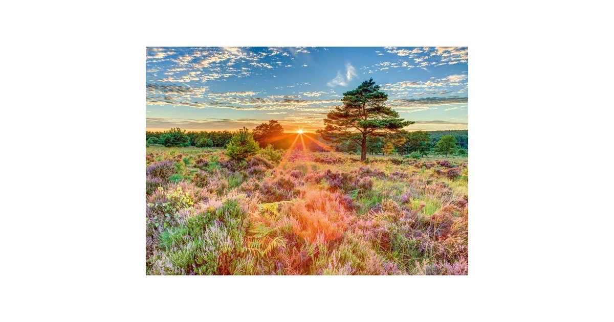 Die Puzzle von Schmidt Spiele bieten Premium-Qualität für echte Puzzle-Liebhaber. Die überzeugende Verarbeitung wird durch perfekten Zusammenhalt der Teile und hohe Passgenauigkeit greifbar. Ein spezieller Mattlack verhindert störende Spiegelungen beim Puzzeln. Die hohe Detailgenauigkeit und die präzisen Farben sorgen für ein spannendes Puzzle-Erlebnis! Das Motiv dieses Puzzles mit 1000 Teilen zeigt ein typisches Heide-Motiv im Sonnenuntergang mit Wald im Hintergrund. Ein farbenfrohes Motiv, das fertig gepuzzelt die Maße 69,3 x 49,3 cm hat.Art.-Nr.: 100041304