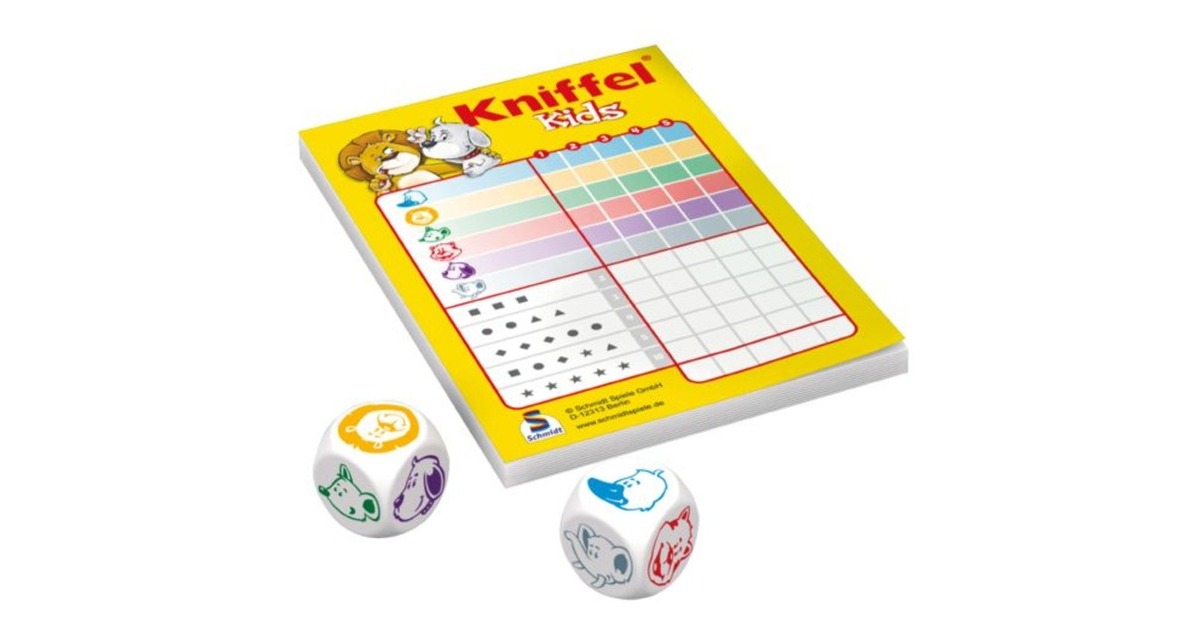 Bei Kniffel Kids wird mit lustigen Tierwürfeln gekniffelt was das Zeug hält. Da macht auch schon jüngeren Kindern der bekannte Würfelspielklassiker tierischen Spaß. Löwe, Ente, Katze Elefant, Hund - Wer würfelt die wertvollsten Tierkombinationen und gewinnt? Mit den kindgerechten Illustrationen kommt so auch bei den Kleinen großes Kniffel-Feeling auf!Art.-Nr.: 1186706