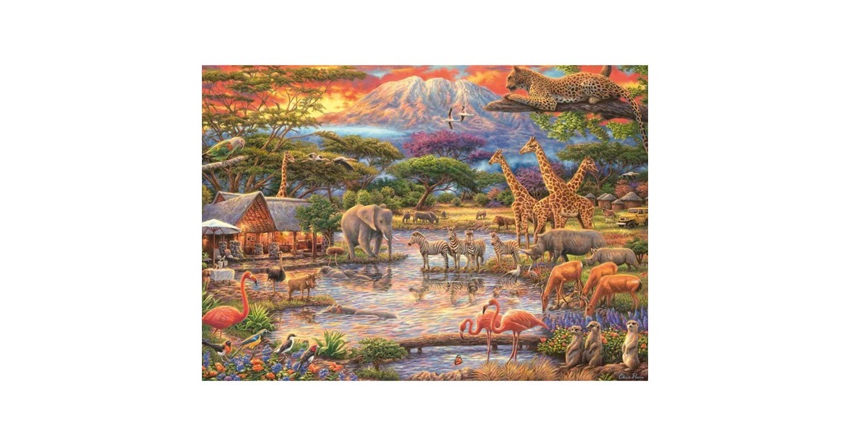 Die Puzzle von Schmidt Spiele bieten Premium-Qualität für echte Puzzle-Liebhaber. Die überzeugende Verarbeitung wird durch perfekten Zusammenhalt der Teile und hohe Passgenauigkeit greifbar. Ein spezieller Mattlack verhindert störende Spiegelungen beim Puzzeln. Die hohe Detailgenauigkeit und die präzisen Farben sorgen für ein spannendes Puzzle-Erlebnis! Das Motiv dieses Puzzles mit 500 Teilen zeigt verschiedene Wildtiere Afrikas, eine Safari-Lodge und den Kilimandscharo im Hintergrund. Ein farbenfrohes Motiv für Afrika-Fans, das fertig gepuzzelt die Maße 48,1 x 34,1 cm hat.Art.-Nr.: 100041399