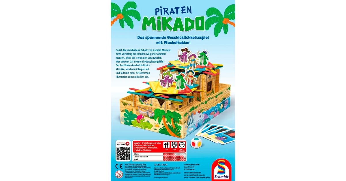 Jo-Ho-Ho! Nach langer Suche wurde es endlich gefunden: Das lang verschollene Schiff von Kapitän Mikado. Unter den Planken funkelt ein Goldschatz. Nun müssen die Planken aus dem Weg geräumt werden, um die meisten Münzen zu sammeln. Aber Vorsicht! Dabei dürfen die wachsamen Tierpiraten nicht umgeworfen werden, sonst gibt es keinen Anteil am Schatz. Nur wer Fingerspitzengefühl beweist und eine Prise Glück hat, kann am Ende siegreich nach Hause segeln.