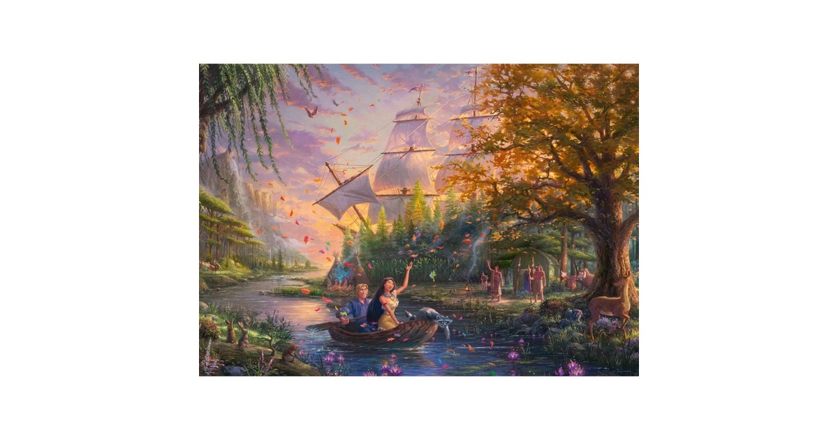 Schmidt Puzzle von Thomas Kinkade Studios: Disney Pocahontas. 1000-teiliges Puzzle ab 12 Jahren. Größe: 69,3 cm x 49,3 cmArt.-Nr.: 1710672| Abmessung | Breite: 693 mm x Höhe: 493 mm |