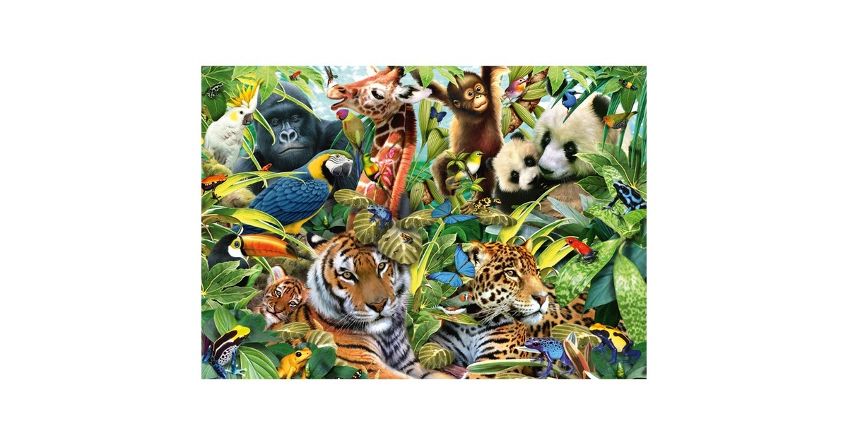 Die Puzzles der Premium-Serie von Schmidt Spiele überzeugen durch hohe Formenvielfalt, höchste Passgenauigkeit und einen speziellen Mattlack für spiegelfreies Puzzlen. Dieses Puzzle zeigt ein Motiv für Tierliebhaber: Die Darstellung eines Stücks Urwald mit verschiedenen Tieren zeichnet sich durch hohen Detailreichtum und tolle Farben aus. Das fertige Puzzle mit 1500 Teilen hat die Maße 84,6 x 59,8 Zentimeter.Art.-Nr.: 1870559