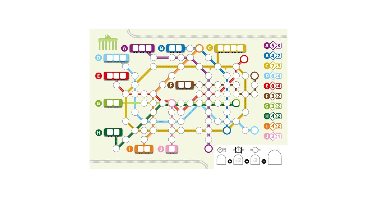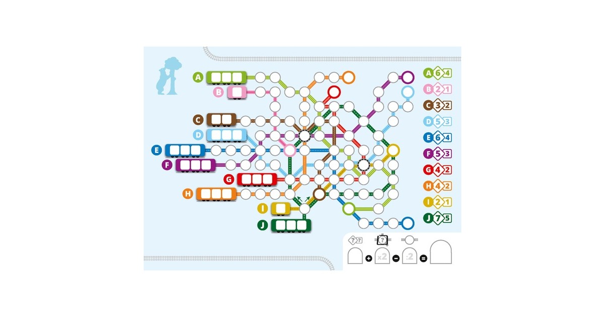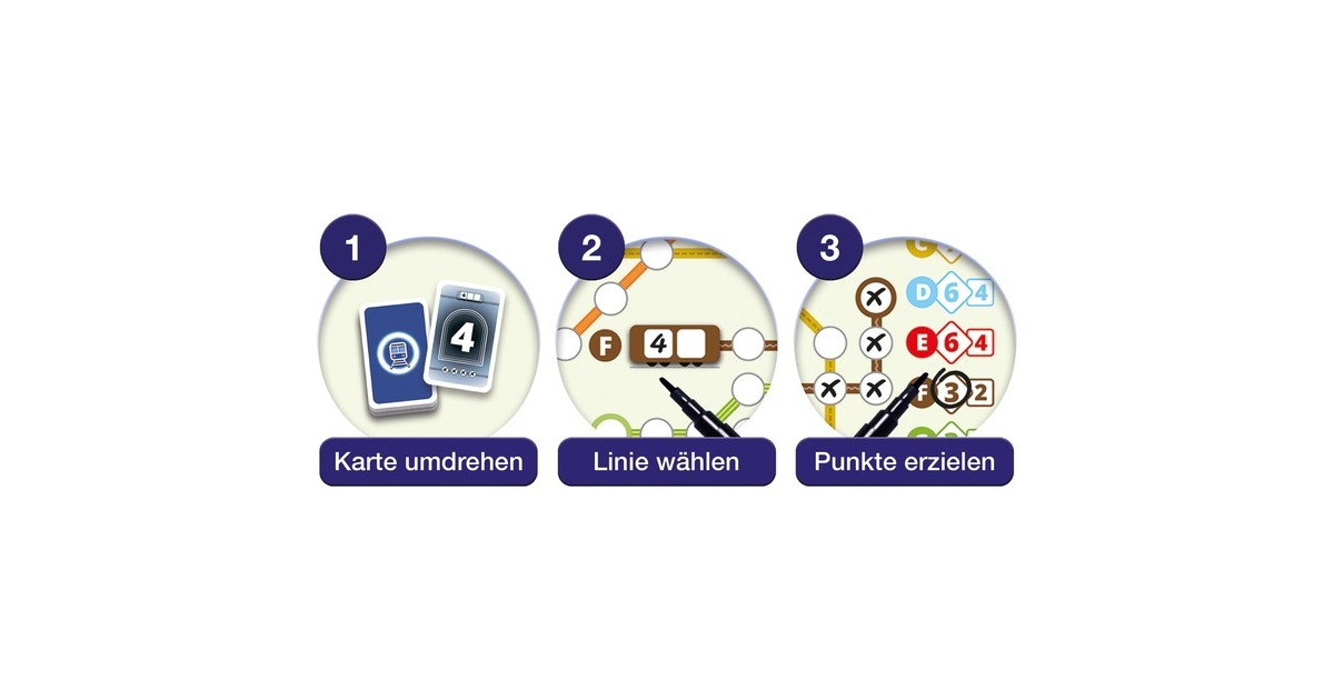 Berlin, Madrid, Amsterdam oder Paris – Es geht kreuz und quer mit der U-Bahn durch die City. Wähle die richtige Linie und plane die besten Umsteigemöglichkeiten. Setze deine Kreuze clever, sei schneller als deine Mitspieler und markiere als Erster die siegpunktreichen Endstationen. Aber Vorsicht! Stoppt dein Zug vorzeitig, bleibst du schnell auf der Strecke. Vier unterschiedliche Pläne bringen Abwechslung ins Spiel und Spaß auf ganzer Linie. Aber für alle gilt: Nur wer geschickt seine Züge vorbereit, hat sich am Ende nicht voll verplant.Art.-Nr.: 1763536