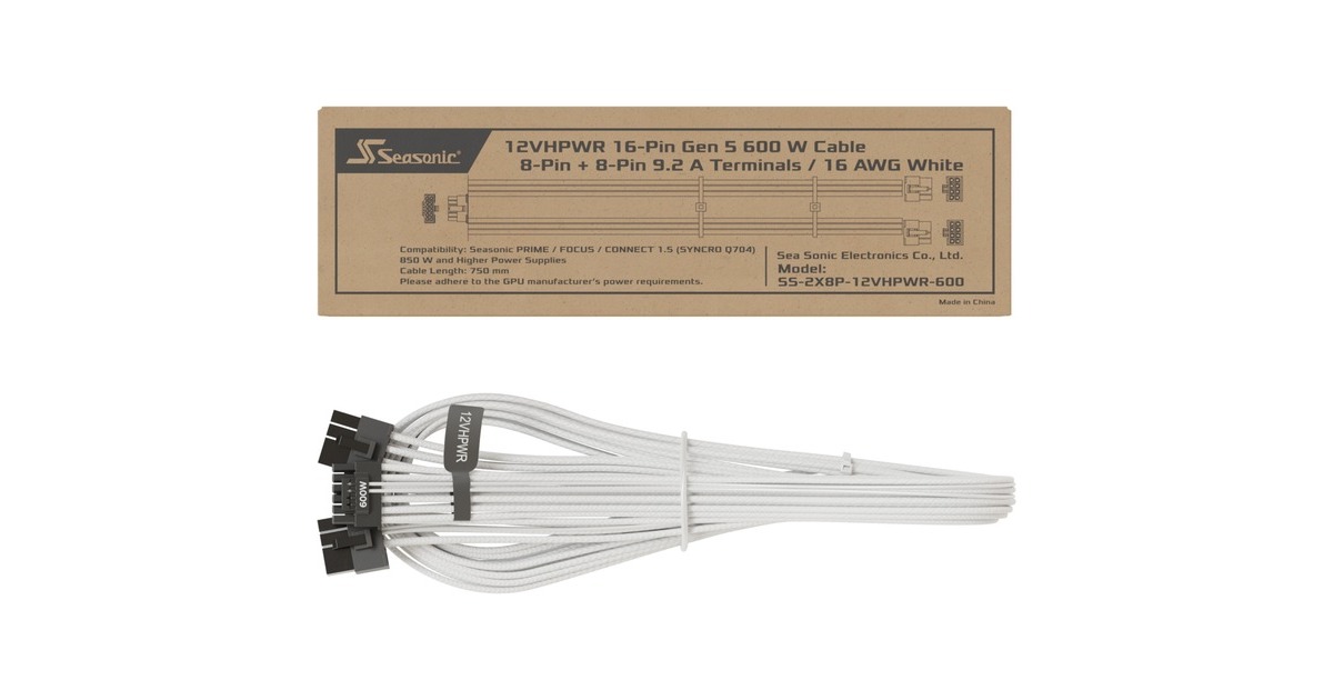 Das Adapter-Kabel SS2X8P-12VHPWR-600 / white von Seasonic ist die optimale Lösung, um eine 12+4 Pin Grafikkarte mit einem ATX 2.xx Netzteil ab 850 Watt zu betreiben. Das Kabel mit attraktivem, weißem Sleeve ist ausgelegt für 600 Watt und ermöglicht den Betrieb aller Grafikkarten mit einem 12V HPWR-Anschluss. Dabei ist es komfortabel in der Anwendung und ersetzt die Notwendigkeit eines breiten Standard-Adapters.Art.-Nr.: 1883324