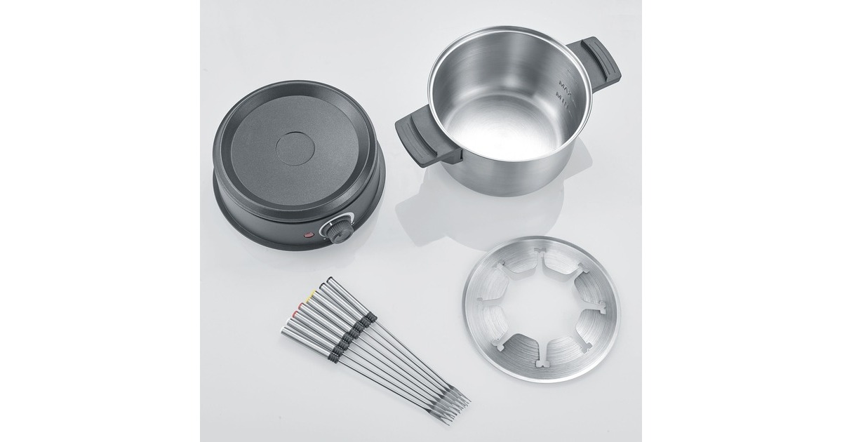 Ob traditionell an Weihnachten, Silvester, Geburtstagen oder einfach für zwischendurch, mit dem FO 2470 Fondue lässt sich gemeinsame Zeit mit Familie und Freunden genießen, während Fleisch, Fisch, Brot oder Gemüse im Edelstahltopf brutzeln. Zur optimalen Unterscheidung kann jeder Gast eine der farblich markierten Fondue-Gabeln zum Herausnehmen der Köstlichkeiten auswählen. Dank der stufenlosen Temperatureinstellung und dem abnehmbaren Edelstahltopf mit min./max. Markierung, ist dieses Fondue Set für die unterschiedliche Fondue-Arten geeignet. Ob Käse-, Schokoladen-, Wein- oder das klassische Öl-Fondue, bei den vielfältigen Möglichkeiten kommt jeder Gast auf seine Kosten. Der Spritzschutz mit Gabelhalter kann abgenommen werden und für eine einfache Reinigung, sind alle abnehmbaren Teile spülmaschinengeeignet.