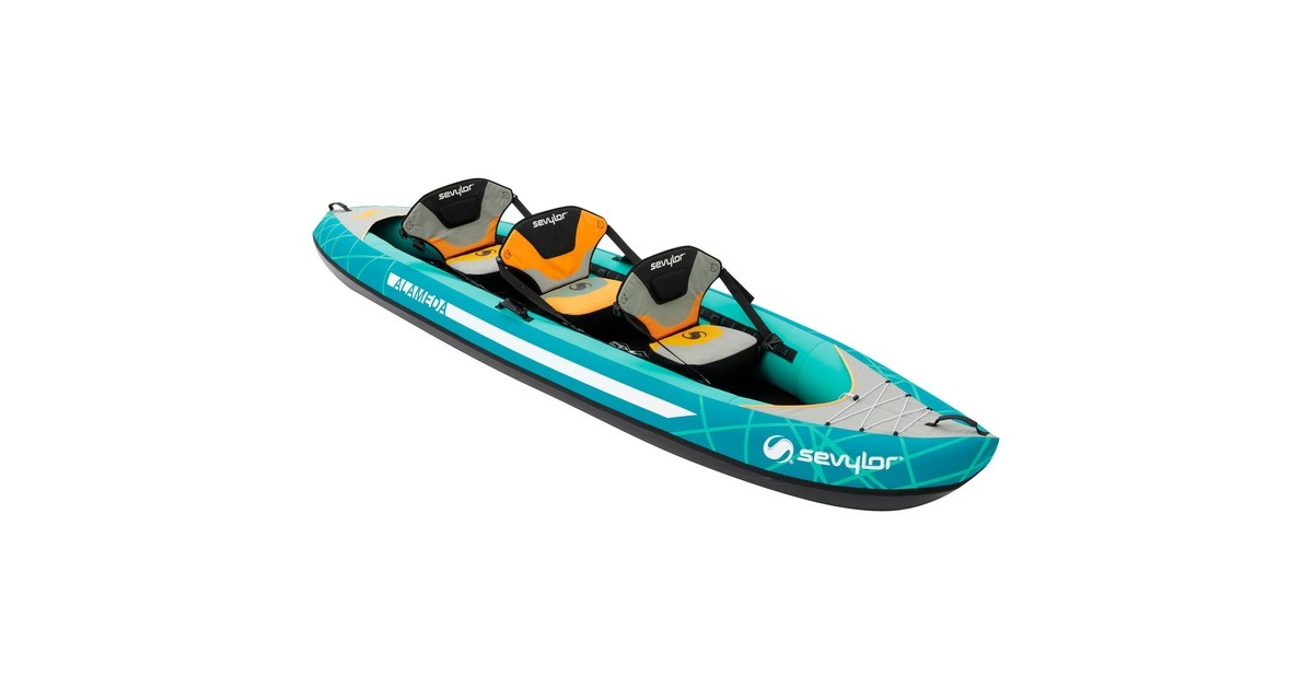 Das Kajak Alameda von Sevylor kombiniert hervorragende Stabilität und Manövrierfähigkeit mit maximalem Komfort, perfekt für einen Familienausflug, eine Tour entlang der geschützten Küste oder auf Binnengewässern. Die drei SupporTall-Sitze mit Lendenstütze bieten Platz für zwei Erwachsene und ein Kind. Sevy-Spension ist ein einzigartiges patentiertes Sitzsystem und macht das Paddeln im Kajak einfacher und zugleich effizienter. Durch die Sitzaufhängung sind die Sitze frei schwebend und verhindern Ausbeulungen des Kajakbodens durch den Benutzer. So bleibt der im Wasser liegende Teil des Kajaks ebenmäßiger und erzeugt ca. 15% weniger Wasserwiderstand. Gleichzeitig sorgen die erhöhten Sitze dafür, dass der Paddler nicht mit dem Spritzwasser in Kontakt kommt, das durch die Paddelschläge ins Kajak gelangt und sich am Boden sammelt. Der seitlich am gesamten Kajak entlang laufende Gurt dient nicht nur der exakten Sitzpositionierung, sondern kann auch zur Befestigung von Wertgegenständen, Schlüsseln etc. genutzt werden. Der herausnehmbare Sitz in der Mitte ermöglicht es, das Alameda von einem 3-Personen-Kajak mühelos in ein 2-Personen-Kajak zu verwandeln. Dank der Boston-Ventile ist das Aufpumpen und Entleeren extrem einfach. Mit dem Easy Inflation Manometer lässt sich der Druck während des Aufpumpens ganz leicht ablesen. Die abnehmbare Finne sorgt für hervorragende Manövrierbarkeit. Der Boden ist dank des Sevy-Strong Tarpaulin Materials besonders robust und widerstandsfähig. Die neuen PaddleGrip Griffe sind sowohl als Tragegriff als auch als Paddelhalter verwendbar, so kann man die Hände frei benutzen und ungestört entspannen.Art.-Nr.: 100031294