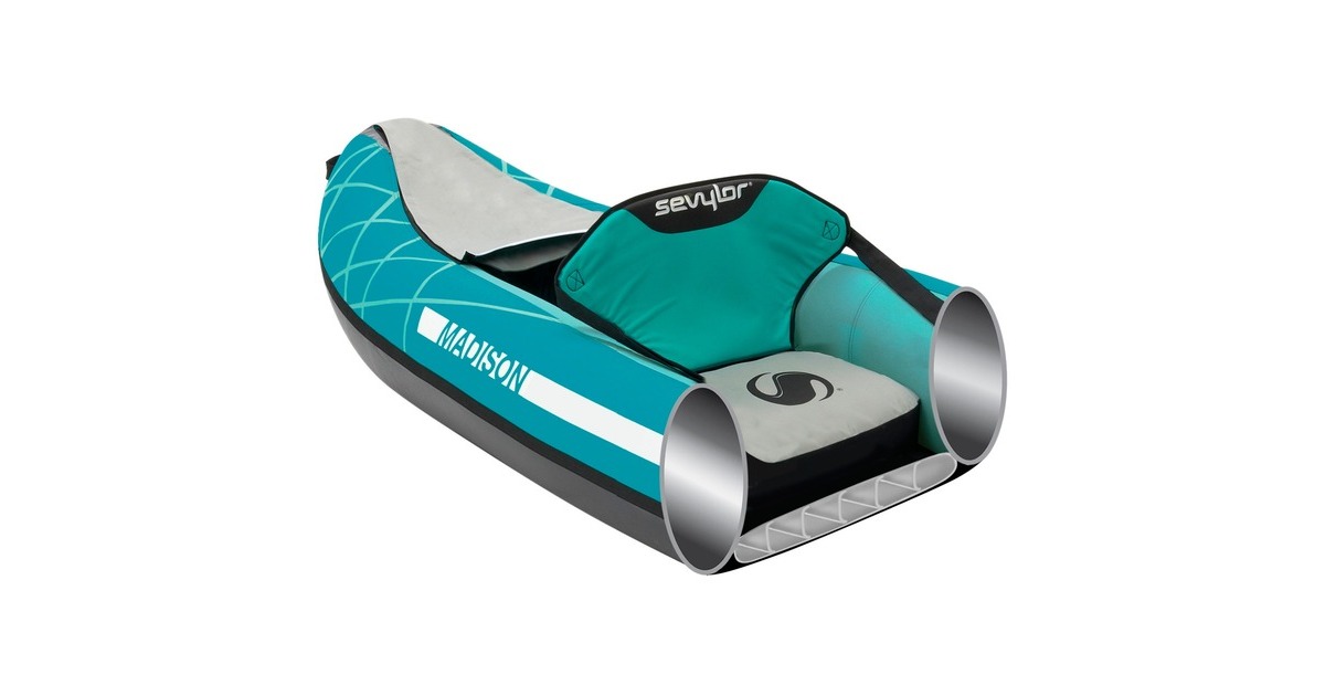 Das Kajak Madison von Sevylor kombiniert Stabilität, Manövrierfähigkeit und Komfort mit leichtem Aufblasen der Luftkammern. Hinzu kommen zwei HighRest Sitze mit größerer Rückenlehne und erhöhter Netz-Sitzfläche, die bei Bedarf einfach abgenommen werden können. Das Madison kann so auch problemlos in ein Ein-Personen-Boot verwandelt werden. Dank der Boston-Ventile ist das Aufpumpen und Entleeren extrem einfach. Das Boston-Ventil ist ein 2-Wege Schraubventil, das die Luft in der Kammer hält. Eine Rückschlagkappe verhindert, dass Luft ausströmt, sobald man den Pumpenschlauch entfernt. Mit dem Easy Inflation Manometer lässt sich der Druck während des Aufpumpens ganz leicht ablesen. Die abnehmbare Finne sorgt für hervorragende Manövrierbarkeit. Der Boden ist dank des Sevy-Strong Tarpaulin Materials besonders robust und widerstandsfähig. Die neuen PaddleGrip Griffe sind sowohl als Tragegriff als auch als Paddelhalter verwendbar, so kann man die Hände frei benutzen und ungestört entspannen. Das mitgelieferte Paddel ist ein Doppelpaddel aus Aluminium mit Paddelblättern aus Fiberglas und Polypropylen, 230cm lang.Art.-Nr.: 100031299