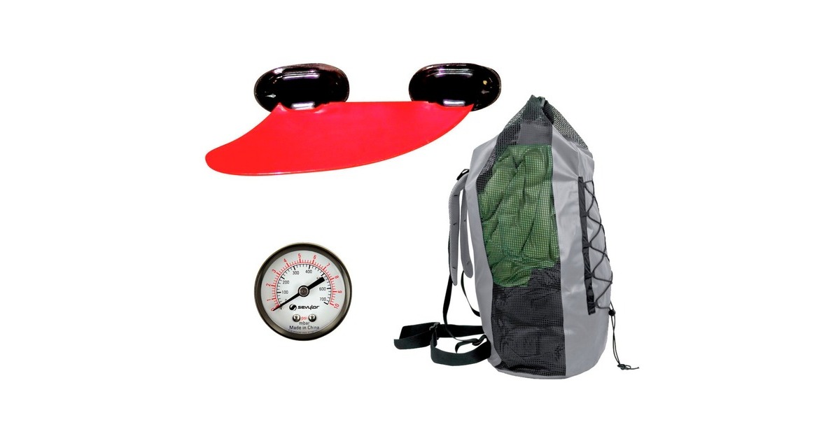Druck-Kontrolle, Sicherheitsventil mit Rückschlagkappe, integrierte Tragegriffe, herausnehmbarer Sitz, 2 Paddelhalter |