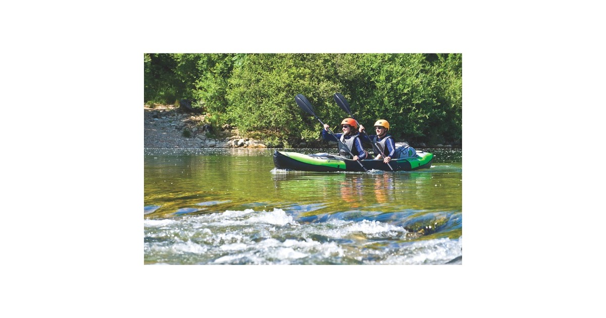 Das Kajak Yukon von Sevylor kombiniert höchsten Fahrkomfort und praktisches Handling mit leichtem Aufblasen der Luftkammern. Hinzu kommen zwei Sitze mit hoher, verstellbarer Rückenlehne, aufblasbarer Sitzfläche und Fußstützen für hohen Sitzkomfort, die bei Bedarf einfach rausgenommen werden können. Das Yukon kann so auch problemlos in ein Ein-Personen-Kajak verwandelt werden. Sowohl Sitz als auch Fußstütze können individuell verstellt werden. Ein großes seitliches Neoprenpolster schützt die Handknöchel beim Paddeln. Im großzügigen Stauraum mit zahlreichen Taschen, wasserdichten Fächern und Spannbändern lässt sich auch umfangreiches Equipment transportieren. Dank der Boston-Ventile ist das Aufpumpen und Entleeren extrem einfach. Das Boston-Ventil ist ein 2-Wege Schraubventil, das die Luft in der Kammer hält. Eine Rückschlagkappe verhindert, dass Luft ausströmt, sobald man den Pumpenschlauch entfernt. Mit dem beiliegenden Manometer lässt sich der Druck nach dem Aufpumpen leicht ablesen. Die abnehmbare Finne sorgt für hervorragende Manövrierbarkeit. Der Boden ist dank des Sevy-Strong Tarpaulin Materials besonders robust und widerstandsfähig. Das Yukon hat entlüftet ein kompaktes Packmaß und kann mit dem innovativen Packsack mit Schulterriemen einfach transportiert werden.Art.-Nr.: 100031291