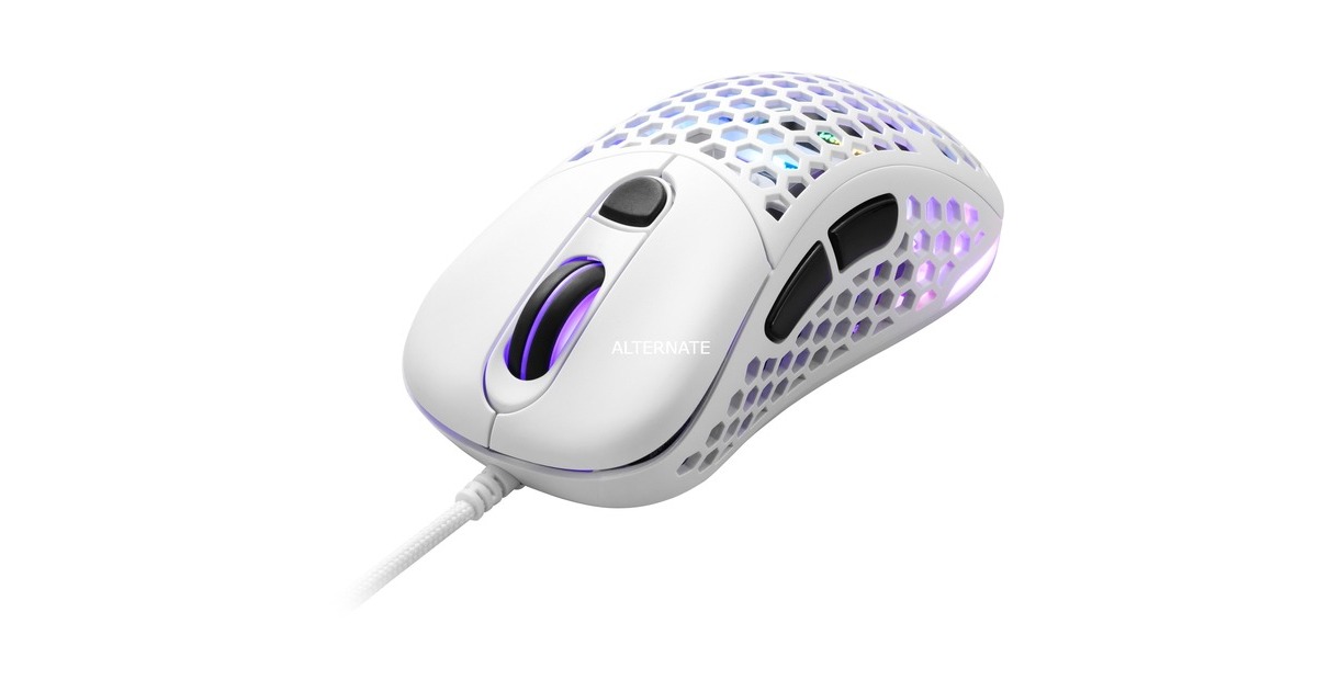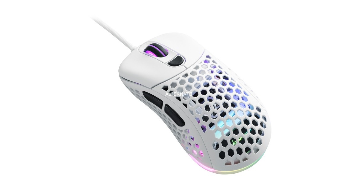 Progammierbare Tasten | DPI-Stufen: 400, 600, 1.200, 2.400, 3.600, 6.400, 16.000 dpi | DPI-Stufen anpassbar | Anpassbares Design | Wabenstruktur | Mausrad und unteres Ende mit RGB-Beleuchtung | Onboard-Speicher für 5 Spiel-Profile | Textilummanteltes Kabel | Goldbeschichteter USB-Stecker | Gaming-Software | Plug&Play |