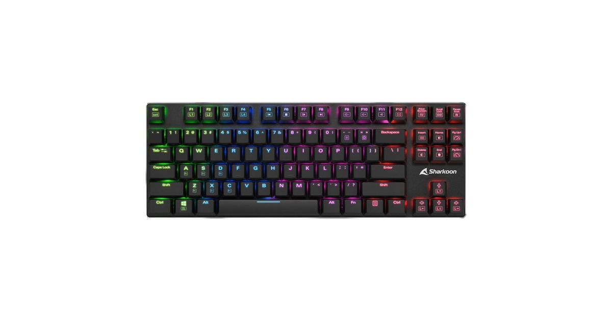 Mit der zeitlos-eleganten PureWriter TKL RGB präsentiert Sharkoon eine Tastatur für alle Gelegenheiten, die neben innovativen, mechanischen Schalter in ultra-flachem Design nun auch mit einer stufenlos-einstellbaren RGB-Beleuchtung in 16,8 Millionen Farben hervorsticht. Dank des fehlenden Nummernblockes ist die Tastatur mit 355 mm Länge und 127 mm Breite randlos kompakt und mit einer Höhe von 23 mm mit eingeklappten Standfüßen so flach wie möglich. Mit nur 503 Gramm Gewicht und zwei mitgelieferten USB-Kabeln mit 50 cm und 150 cm Länge, ist sie zudem bequem zu transportieren und – egal ob unterwegs, daheim oder im Büro – überall einsetzbar. Vielschreiber werden dabei besonders die flachen, blauen Schalter nicht mehr missen möchten. Durch den geringen Weg zum Schaltpunkt von 1,5 mm sowie die spürbaren Klick- und Umschaltpunkte ist ein ermüdungsfreies Arbeiten bei angenehmer Schreibmaschinen-Atmosphäre bietet. Durch die flache Höhe der Tastatur wird auch ohne Handballenauflage eine ergonomische Arbeitsweise unterstützt. Dank der langen Lebensdauer der Tasten von mindestens 50 Millionen Tastenanschlägen können zehntausende Seiten getippt werden – und dass mittels der stufenlos-regulierbaren RGB-Beleuchtung sogar in abgedunkelter Umgebung! Gamer können sich neben der individuellen Beleuchtung in 16,8 Millionen Farben auf eine Vielzahl an Beleuchtungseffekten und die in vier Profilen speicherbare individuelle Beleuchtung einzelner Tasten freuen. Dabei lassen sich alle Einstellungen schnell und einfach ohne Software vornehmen. Selbstverständlich bietet die PureWriter TKL RGB mit N-Key-Rollover, Anti-Ghosting-Keys und eine Polling-Rate von 1.000 Hz alles weitere Essentielle, was zum Spielen benötigt wird.Art.-Nr.: 1397950