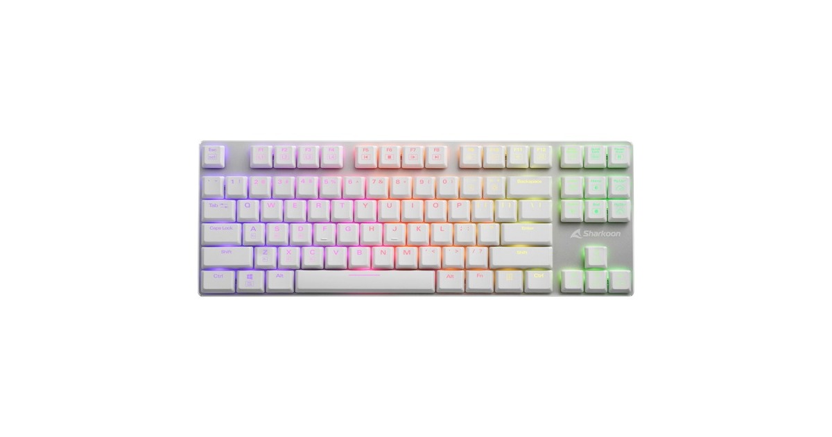 Mit der zeitlos-eleganten PureWriter TKL RGB präsentiert Sharkoon eine Tastatur für alle Gelegenheiten, die neben innovativen, mechanischen Schalter in ultra-flachem Design nun auch mit einer stufenlos-einstellbaren RGB-Beleuchtung in 16,8 Millionen Farben hervorsticht. Dank des fehlenden Nummernblockes ist die Tastatur mit 355 mm Länge und 127 mm Breite randlos kompakt und mit einer Höhe von 23 mm mit eingeklappten Standfüßen so flach wie möglich. Mit nur 503 Gramm Gewicht und zwei mitgelieferten USB-Kabeln mit 50 cm und 150 cm Länge, ist sie zudem bequem zu transportieren und – egal ob unterwegs, daheim oder im Büro – überall einsetzbar. Vielschreiber werden dabei besonders die flachen, blauen Schalter nicht mehr missen möchten. Durch den geringen Weg zum Schaltpunkt von 1,5 mm sowie die spürbaren Klick- und Umschaltpunkte ist ein ermüdungsfreies Arbeiten bei angenehmer Schreibmaschinen-Atmosphäre bietet. Durch die flache Höhe der Tastatur wird auch ohne Handballenauflage eine ergonomische Arbeitsweise unterstützt. Dank der langen Lebensdauer der Tasten von mindestens 50 Millionen Tastenanschlägen können zehntausende Seiten getippt werden – und dass mittels der stufenlos-regulierbaren RGB-Beleuchtung sogar in abgedunkelter Umgebung! Gamer können sich neben der individuellen Beleuchtung in 16,8 Millionen Farben auf eine Vielzahl an Beleuchtungseffekten und die in vier Profilen speicherbare individuelle Beleuchtung einzelner Tasten freuen. Dabei lassen sich alle Einstellungen schnell und einfach ohne Software vornehmen. Selbstverständlich bietet die PureWriter TKL RGB mit N-Key-Rollover, Anti-Ghosting-Keys und eine Polling-Rate von 1.000 Hz alles weitere Essentielle, was zum Spielen benötigt wird.Art.-Nr.: 1747581