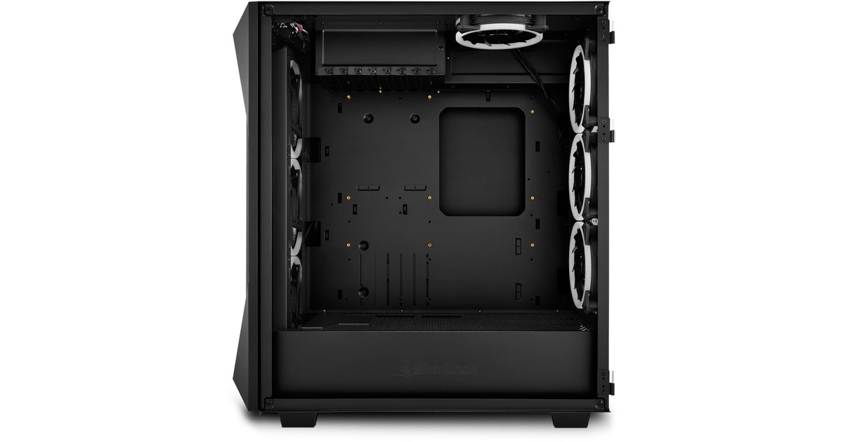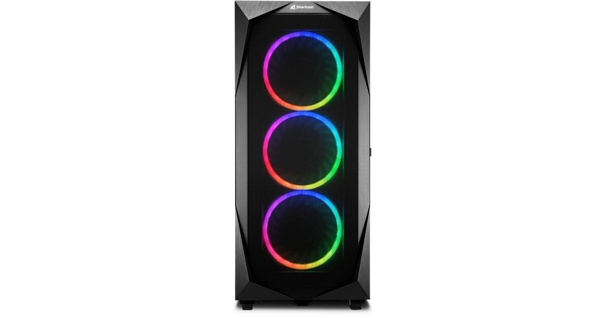 Das innovative ATX-Gehäuse REV300 ist geschaffen für Leistung. Das durchdachte Konzept ermöglicht ein ganz neues Gefühl bei der Zusammenstellung eines Gaming-PCs. Eine Frontblende mit Mesh und sieben vorinstallierten PWM-Lüftern optimieren den Airflow und maximieren die Performance der Hardware. Dank adressierbarer Lüfter-LEDs und eines Seitenteils aus gehärtetem Glas, wird alles, was im REV300 eingebaut ist, richtig zur Geltung gebracht. Mit der REV-Serie hat Sharkoon traditionelle Gehäuse einfach auf links gedreht. Das REV300 bildet hier keine Ausnahme und lässt sich wieder durch ein rechts angebrachtes Seitenteil aus gehärtetem Glas ins Innere schauen. Perfekt für alle, die ihr mächtiges Gaming-System auf der linken Seite des eigenen Setups positionieren wollen. REVolutionär ist zudem der Einbau aller Komponenten um ein um 90 Grad gedrehtes Mainboard, das alle Kabel und Anschlüsse in ein spezielles Kabelfach an der Oberseite abführt. Die I/O-Blende glänzt nicht nur mit vier herkömmlichen USB-Anschlüssen, sondern bietet auch einen Anschluss für Geräte mit USB-Type-C-Schnittstelle. Eine stattliche Größe und ein eleganter Look zeichnen das REV300 aus. Die mit Mesh überzogene Frontblende wird durch geometrisch verwinkelte Ecken eingerahmt, die somit dezente optische Akzente setzen und den Fokus auf die adressierbaren RGB-Lüfter an der Vorderseite lenken. Durch das minimalistische Design kommt die eindrucksvolle Beleuchtung des REV300 noch besser zur Geltung. Sieben vollständig adressierbare Lüfter tauchen das massive Gehäuse in leuchtende Farben und verwandeln es in einen Traum für RGB-Enthusiasten. Wer ein anspruchsvolles Gaming-System sein Eigen nennt, der weiß, dass ein ordentlicher Airflow ein Muss ist. Das REV300 ist dafür bestens ausgestattet. Sieben Lüfter sind im Gehäuse bereits vorinstalliert, sodass man direkt durchstarten und von einer maximalen Kühlung der Hardware profitieren kann. Ein Mesh-Gitter erstreckt sich über die gesamte Frontblende und macht so den Weg für ordentlich viel Luft frei, die drei 140-mm-RGB-LED-Lüftern zugeführt wird. An der Rückseite sind nochmal drei 120-mm-RGB-LED-Lüfter eingebaut. Ergänzt durch einen weiteren 120-mm-RGB-LED-Lüfter an der Oberseite entsteht ein effizienter Airflow, der selbst Systeme unter Volllast kühl hält. Wer auf Wasserkühlung setzt, kann im REV300 auch gleich zwei Radiatoren unterbringen. An der Rückseite ist der Einbau eines 360 mm großen Radiators möglich während in der Front sogar ein gigantischer 420 mm-Radiator Platz findet.Art.-Nr.: 1703141