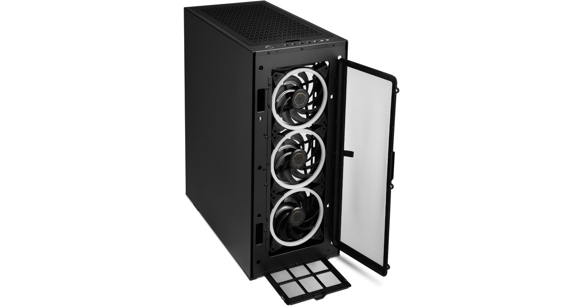 Innenlackierung, Kabelmanagement-System, Seitenteil aus gehärtetem Glas mit Scharnieren und Magnetverschluss, manuelle Farbsteuerung: RGB-Steuerung mit 20 Addressierbaren Modi, Gehäuseoberseite: 1x adressierbarer 120-mm-Lüfter (vorinstalliert) |