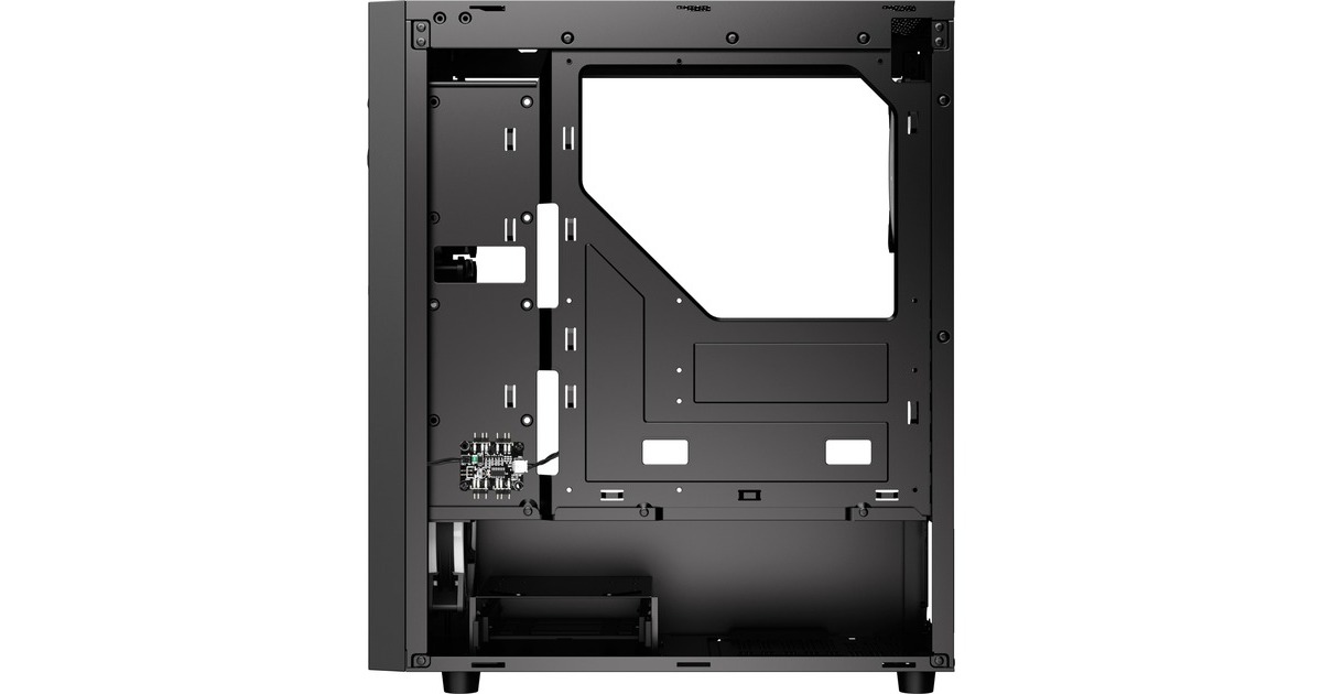 Seitenteil aus gehärtetem Glas, Innenlackierung, Werkzeugfreie Laufwerkmontage, Kabelmanagement-System, 2x 140-mm- oder 2x 120-mm-Lüfter an der Oberseite einbaubar |