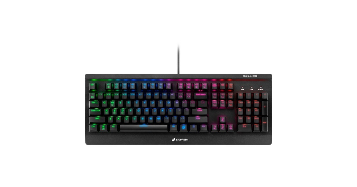 Die SKILLER SGK3 von Sharkoon ist eine mechanische Gaming-Tastatur mit 3-Block-Layout, die das Unmögliche wagt und E-Sport-taugliche Features mit einem unschlagbaren Preis-Leistungs-Verhältnis verbindet. So präsentiert sie sich bereits optisch durch ihr kompaktes Design mit verstärkter Metalloberfläche und freistehenden Tasten sowie der satten RGB-Beleuchtung – wie gemacht für Events und den heimischen Gaming-Desk. Doch auch funktionell ist sie mit N-Key-Rollover, einer Polling-Rate von 1.000 Hz, zahlreichen voreingestellten Funktionstasten mit Multimedia-Aktionen und einer intuitiven Software ganz auf die Bedürfnisse von Gamern und professionellen Spielern ausgelegt. Dank ihrer schnell auslösenden Kailh-Schalter ist man stets jeder Herausforderung gewachsen und mit dem mitgelieferten Tastenkappen-Set können die meistgenutzten Tasten für eine noch bessere Handhabung einfach hervorgehoben werden. Durch die Doubleshot-Technologie und das verwendete, hochwertige PBT sind die Tastenkappen besonders langlebig und robust – ohne die Beleuchtung zu behindern. Für Ordnung und ein gutes Ressourcenmanagement lassen sich die meisten Funktionen der Tastatur sofort nach dem Anschließen nutzen. Wer jedoch alles aus seiner SKILLER SGK3 herausholen möchte, kann für eine freie Tastenbelegung, die Möglichkeit zur Makroaufnahme oder zusätzliche Beleuchtungsverwaltung die herunterladbare Gaming-Software nutzen.Art.-Nr.: 1308887